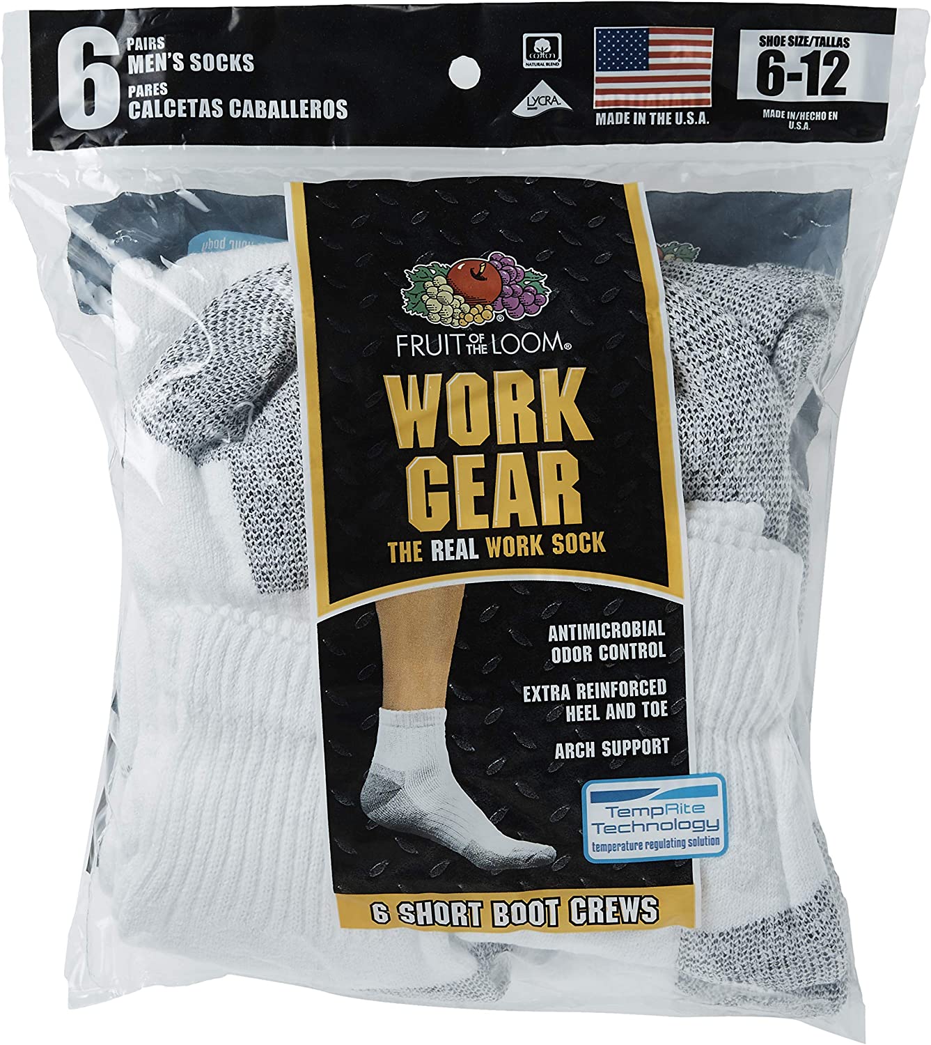 Fruit of the Loom mens Cushioned Durable Cotton Work Gear With Moisture Wicking Casual Sock, White, One Size US
