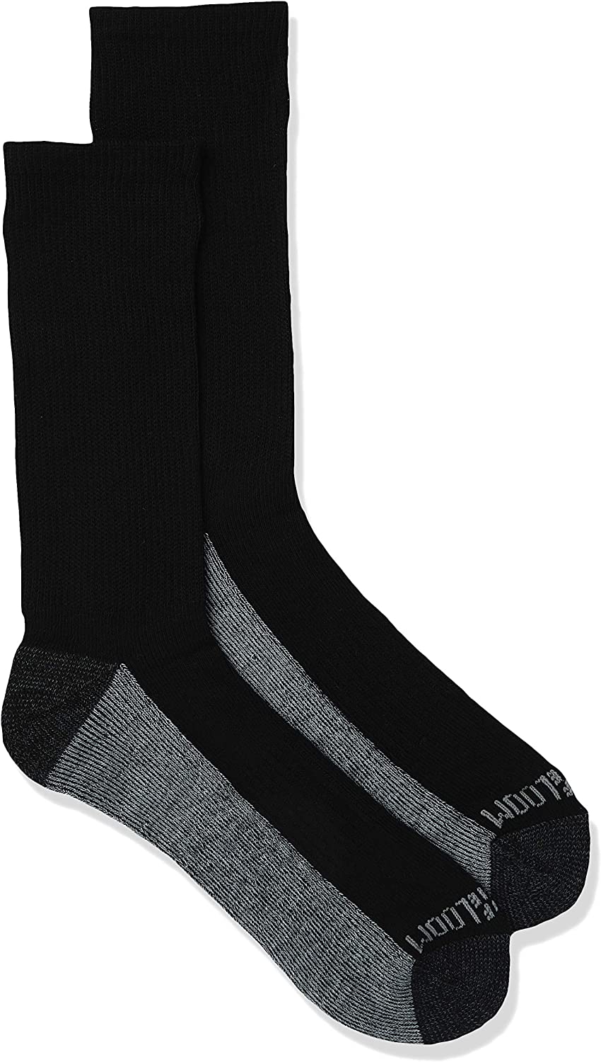 Fruit of the Loom socks are comfortable, affordable, and built to last. These men's crew socks feature arch support, a durable gray cushioned sole, and spandex throughout. The black silhouette features stays black fabrication. 6 pairs per package. Fits men's shoe size 6-12.
