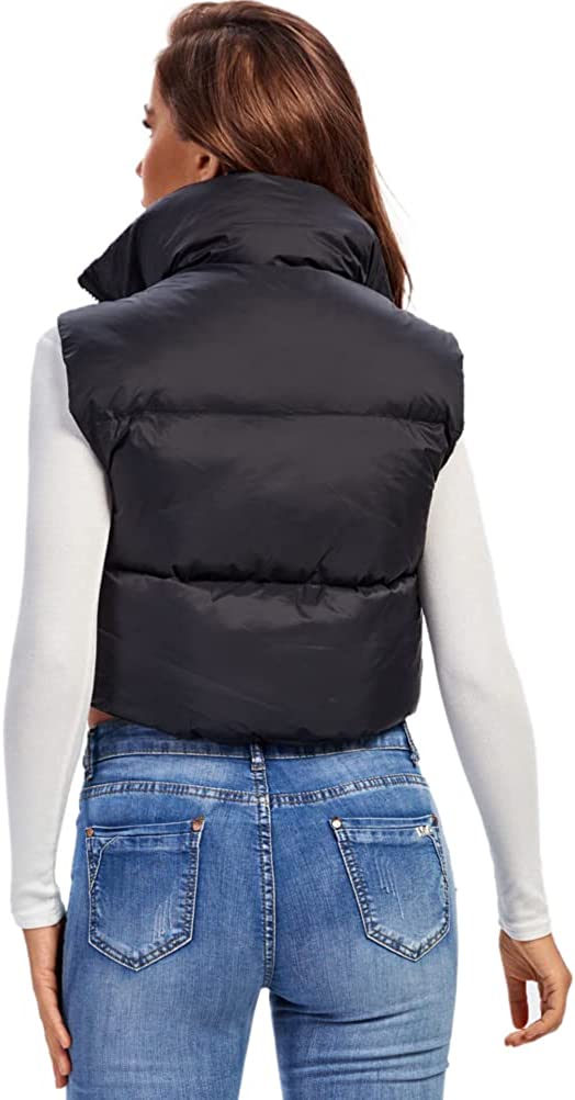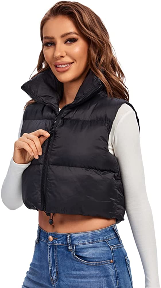 Fuinloth Women's Padded Vest, High Stand Collar Lightweight Zip Crop Puffer Gilet