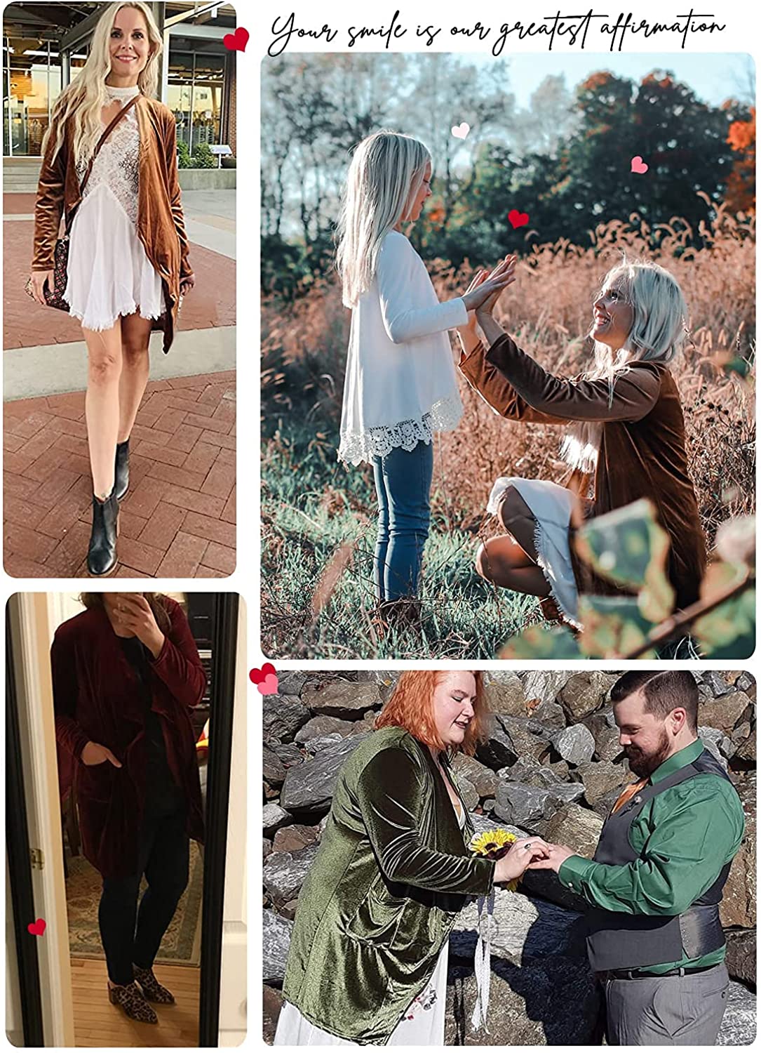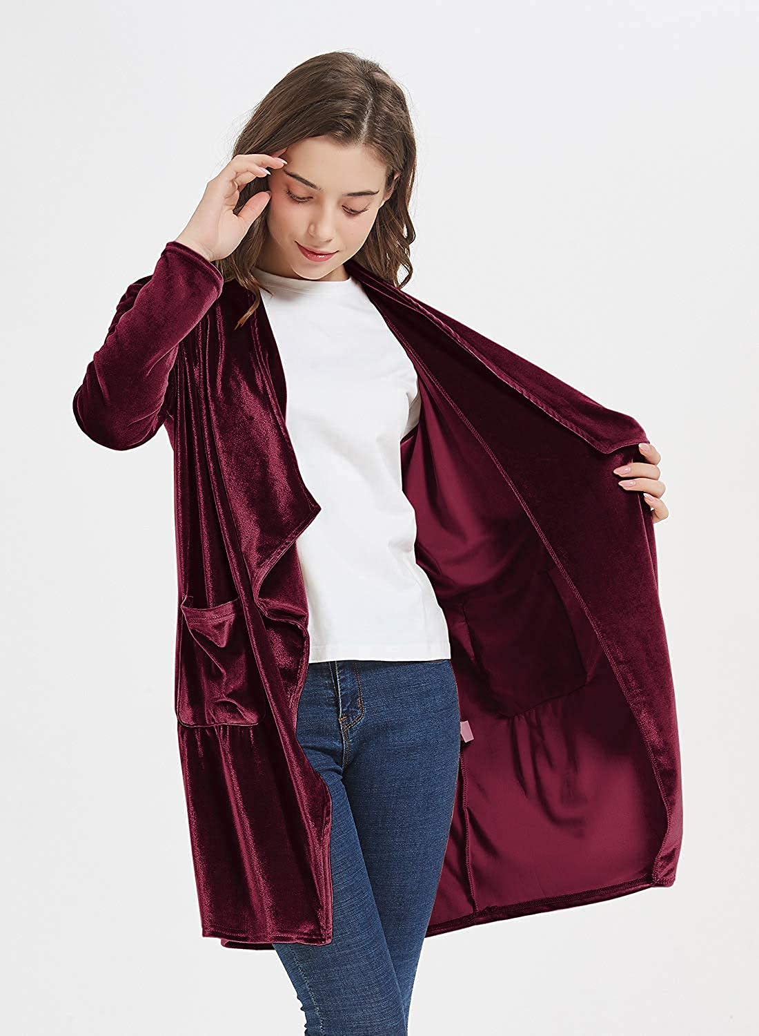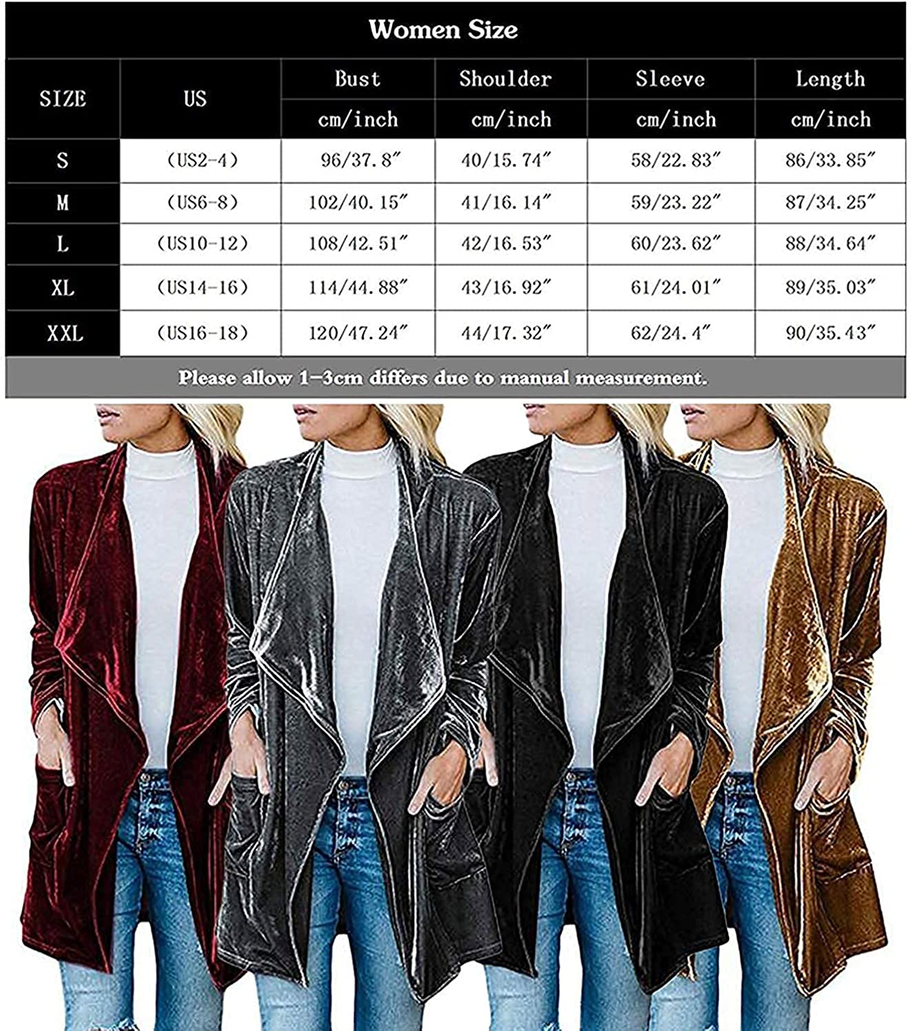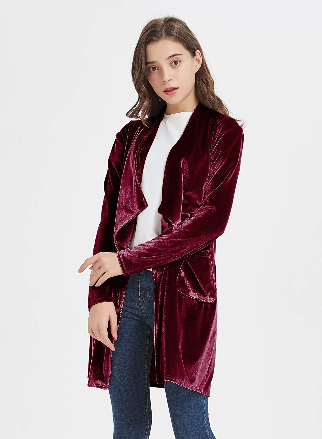 futurino Women's Solid Long Sleeve Velvet Jacket Open Front Cardigan Coat with Pockets Outerwear