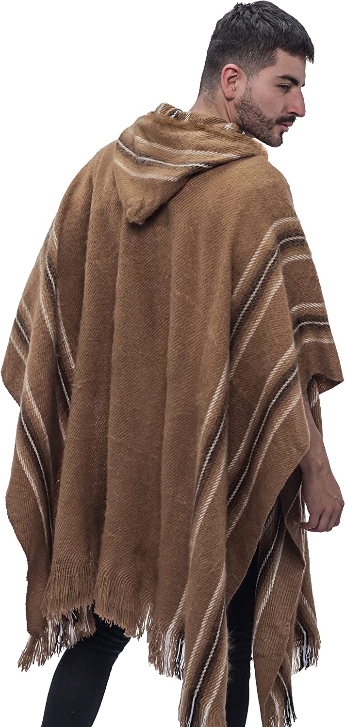 Gamboa Alpaca Poncho Men Ponchos Adult Wool Poncho Men Pancho Men Mens Poncho Cloak with Hood Men Mexican Poncho Style