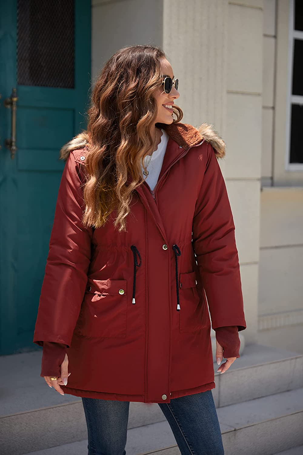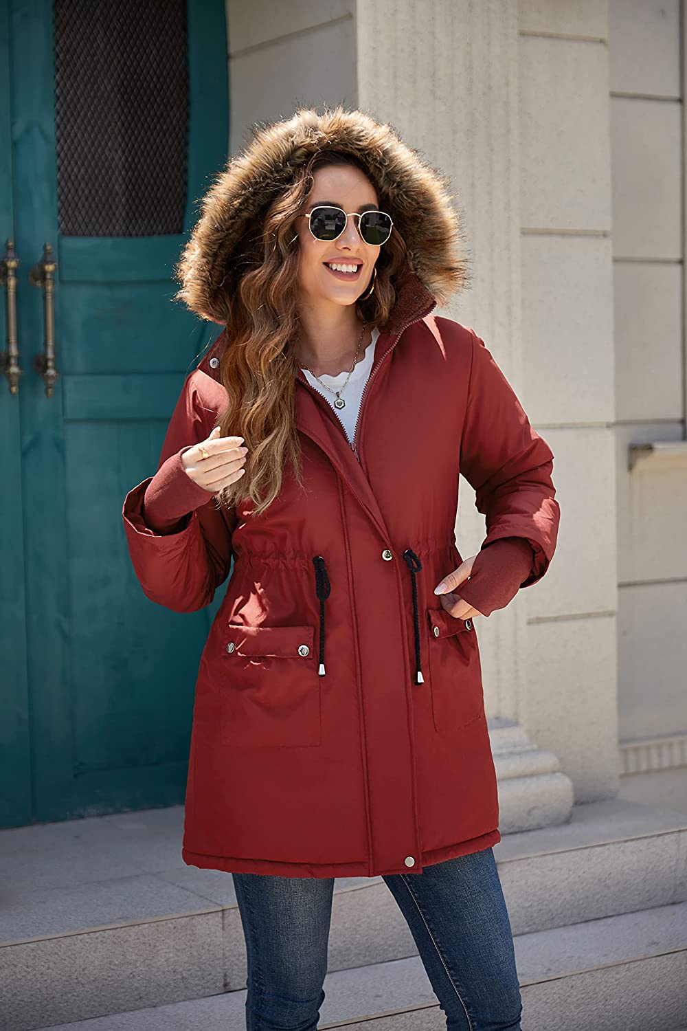 GRACE KRAIN Womens Hooded Winter Coats Long Warm Fleece Lined Jacket Parka with Pockets Waterproof Windproof