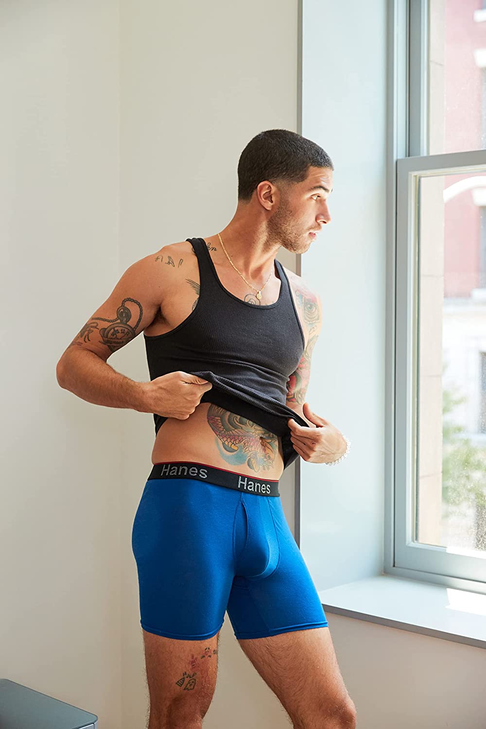 This Hanes® Total Support Pouch® men's anti-chafing underwear pack is made from an ultra-stretchy recycled fabric that's amazingly soft. Our experts designed them with breathable, anti-chafing mesh panels that help prevent chafing and Comfort Flex® waistband that flexes and moves with you. They are moisture-wicking and odor-resistant to help keep you fresh no matter what your day holds. Plus, you can throw them right in the washer when they need a quick refresh. And the best part of all? These men's boxer briefs with pouch are available in multiple size and leg options for easy shopping.