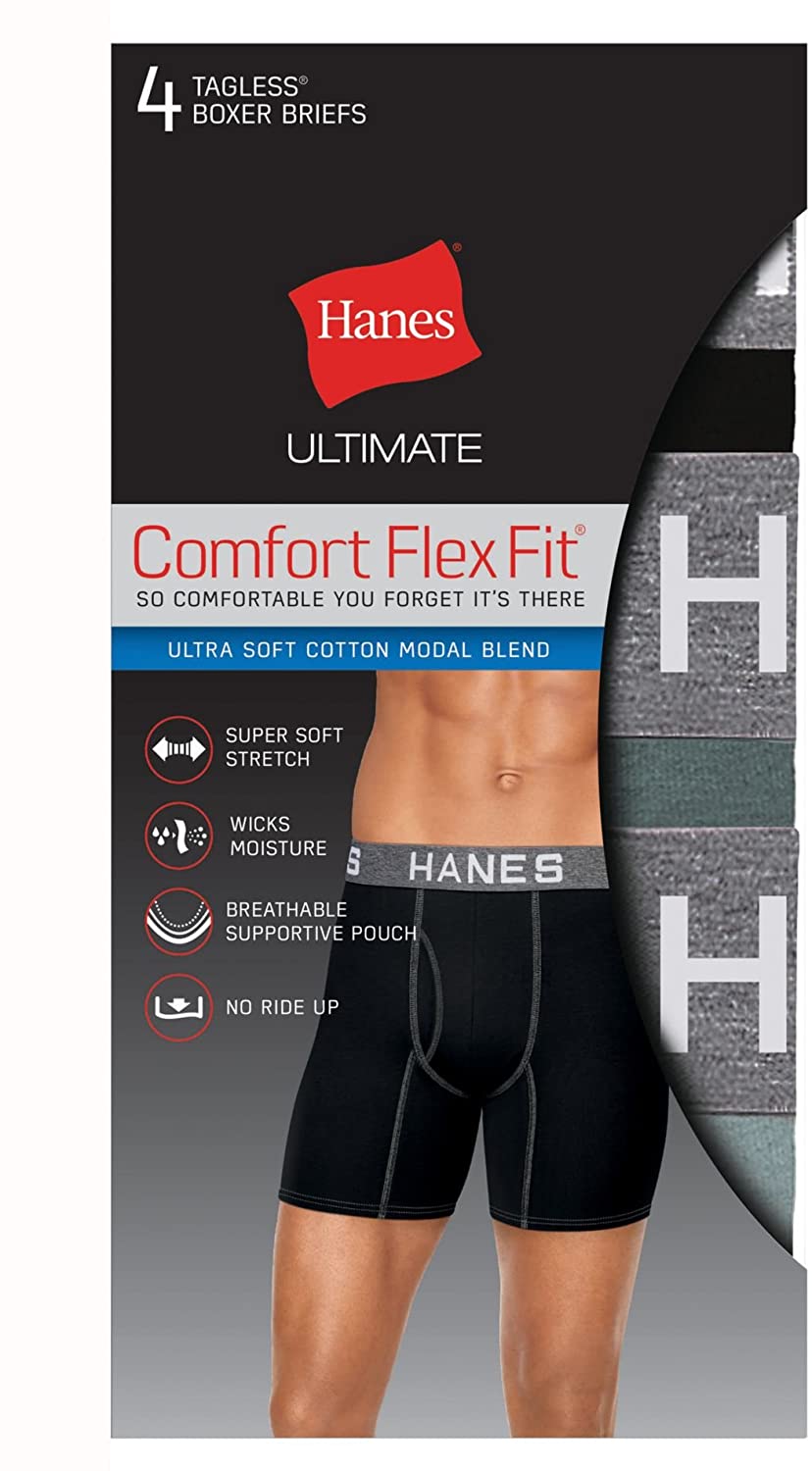 The new Hanes Ultimate Comfort Flex Fit boxer briefs are here. Our newest innovation in comfort features a specially constructed pouch for both support and a roomy fit. It’s made from ultra-soft cotton modal fabric and features a premium comfort waistband.