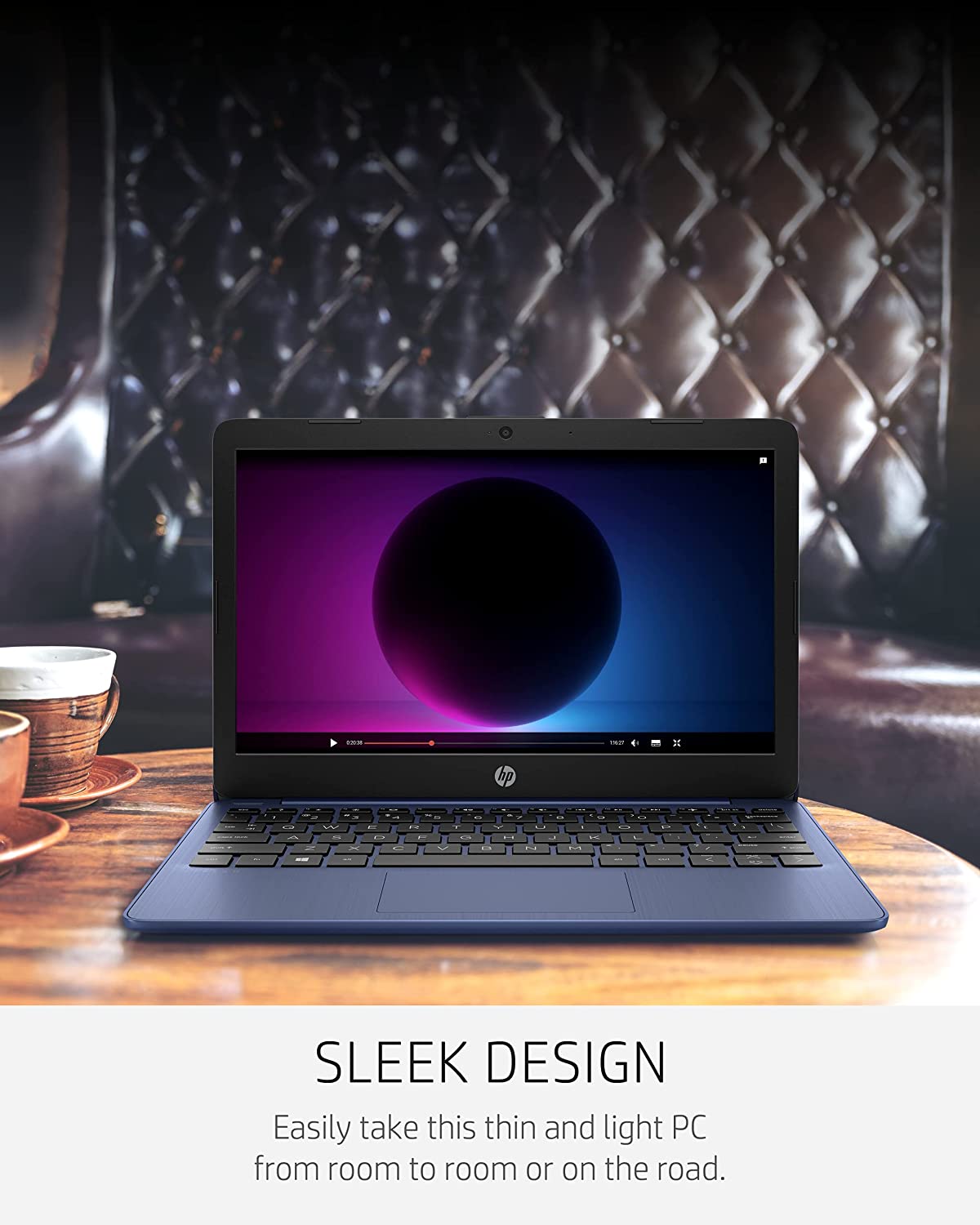 Live your best life on the go and in style with the slim and expressive HP Stream 11 Laptop. With its smooth finish, vertical brushed pattern, and pop of Royal Blue color, this windows laptop perfectly fits your personality. The design isn't only for looks; the ultra-thin laptop is super portable and its high-definition display contains an anti-glare panel—perfect for travel and computing out in the sun (1). This affordable HP laptop features powerful and reliable hardware, such as the dual-core Intel® Celeron® N4020 processor (2) and Intel® UHD Graphics 600 (3). Plus, with an embedded Multimedia Card, you’ll enjoy 64 GB of storage for greater content security, fewer moving parts, and at a great value (4). Additionally, experience a boost to your 11.6-inch laptop’s overall performance and bandwidth thanks to 4 GB of RAM. And with up to 13 hours and 15 minutes of battery life, you’ll enjoy all that processing power and storage options from the start of your workday to the end of your evening streaming (5). Experience quicker boot-ups and strong protection against phishing and malware with the Windows 11 Home in S Mode (6). Plus, your device's 1-year limited hardware warranty provides even more peace of mind. Whether you’re at home, the office, or in class, the dependable Realtek RTL8822CE 802.11a/b/g/n/ac (2x2) Wi-Fi® (7) and Bluetooth® 5.0 (8) combo is just the solution for preventing unwanted connection drops or waiting on endless load screens. Take advantage of a free 1-year subscription to Microsoft 365 and utilize the many new smart assistance tools and other creativity promoting features this HP laptop computer has to offer (9). Stay productive anywhere while shrinking your carbon footprint with a PC laptop that's not only built with sustainability in mind, but is also ENERGY STAR® certified (10) and EPEAT® Silver registered (11). (1) High-definition (HD) content is required to view high-definition images. (2) Multi-core is designed to improve the performance of certain software products. Not all customers or software applications will necessarily benefit from the use of this technology. Performance and clock frequency will vary depending on application workload and your hardware and software configurations. Intel’s numbering, branding, and/or naming is not a measurement of higher performance. Intel, Pentium, Intel Core, Celeron, Iris Xe, Intel logo, and the Intel Inside logo are trademarks of Intel Corporation in the U.S. and other countries. (3) Shared video memory (UMA) uses part of the total system memory for video performance. System memory dedicated to video performance is not available for other use by other programs. (4) For storage drives, GB = 1 billion bytes. The actual formatted capacity is less. Up to 5.1GB of disk is reserved for system recovery software. (5) Battery life tested by HP using continuous FHD video playback, 1080p (1920x1080) resolution, 150 nits brightness, system audio level at 17%, player audio level at 100%, played full-screen from local storage, headphone attached, wireless on but not connected. Actual battery life will vary depending on configuration and maximum capacity will naturally decrease with time and usage. (6) Not all features are available in all editions or versions of Windows. Systems may require upgraded and/or separately purchased hardware, drivers, software, or BIOS update to take full advantage of Windows functionality. Windows 11 is automatically updated, which is always enabled. ISP fees may apply and additional requirements may apply over time for updates. See http://www.windows.com. Windows 11 in S mode works exclusively with apps from the Microsoft Store within Windows. Certain default settings, features, and apps cannot be changed. Some accessories and apps compatible with Windows 11 may not work (including some antivirus, PDF Writers, driver utilities, and accessibility apps) and performance may vary, even if you switch out of S mode. If you switch to Windows 11, you can’t switch back to S mode. Learn more at Windows.com/SmodeFAQ. (7) Wireless access point and internet service required and sold separately. The availability of public wireless access points is limited. Wi-Fi 5 (802.11ac) is backward compatible with prior Wi-Fi 5 specs. (8) Bluetooth® is a trademark owned by its proprietor and used by HP Inc. under license. (9) Microsoft 365 Personal 1-year subscription included. Activation is required within 180 days of the Windows activation date. Microsoft 365 Family and Microsoft 365 Personal have non-commercial rights and are meant for personal use only. See microsoft.com for full details. (10) ENERGY STAR and the ENERGY STAR mark are registered trademarks owned by the U.S. Environmental Protection Agency. (11) Based on U.S. EPEAT® registration according to IEEE 1680.1-2018 EPEAT®. EPEAT® status varies by country. Visit www.epeat.net for more information.