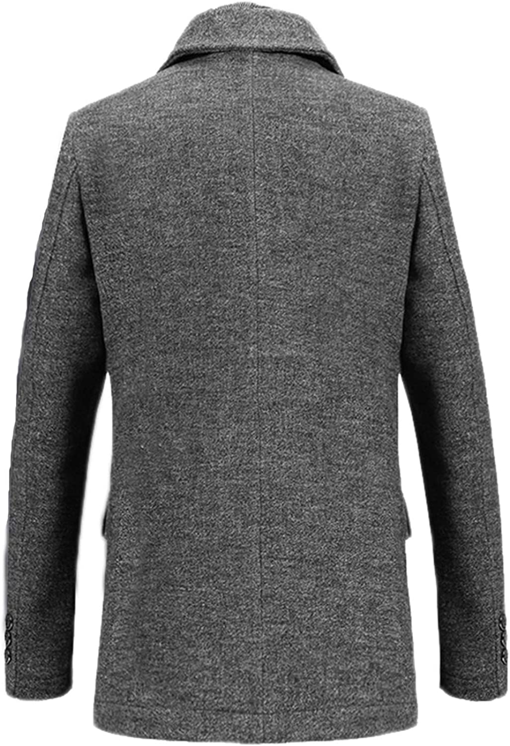 INVACHI Men's Slim Fit Winter Warm Short Woolen Coat Business Jacket with Free Detachable Soft Touch Wool Scarf