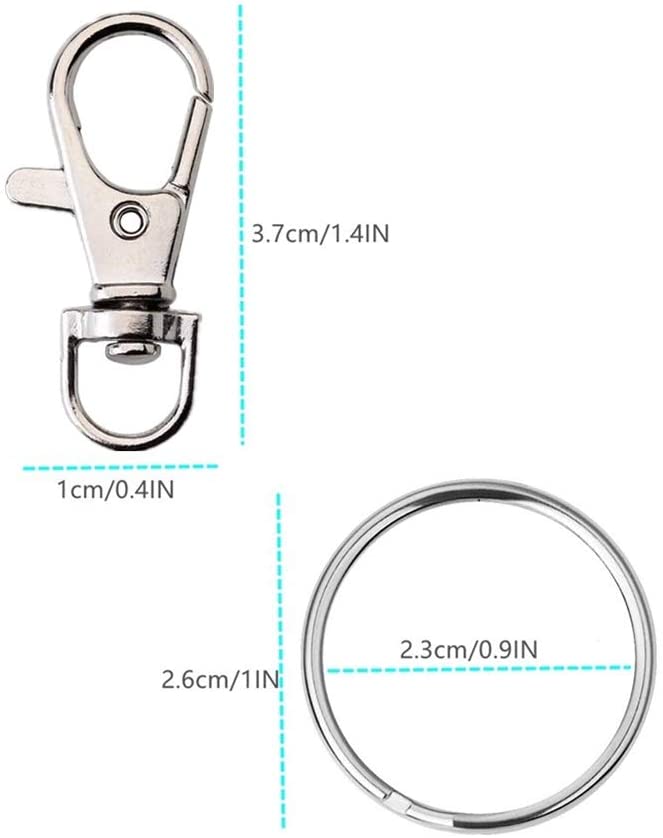 IPXEAD 120PCS Premium Swivel Lanyard Snap Hook with Key Rings, Metal Hooks Keychain Hooks for Lanyard Key Rings Crafting(Silver)