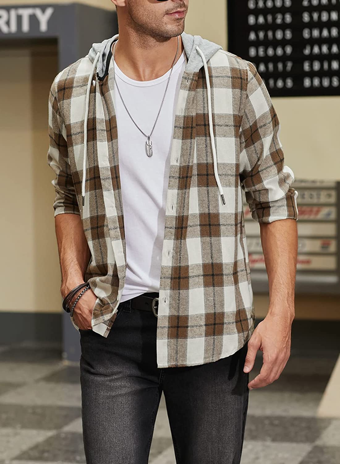 JMIERR Mens Flannel Plaid Hoodie Shirts Casual Button Down Long Sleeve Lightweight Shirt