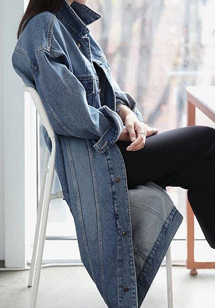Jofemuho Womens Classic Long Jean Jacket Plus Size Loose Long Sleeve Button Down Denim Jacket Trench Coat
