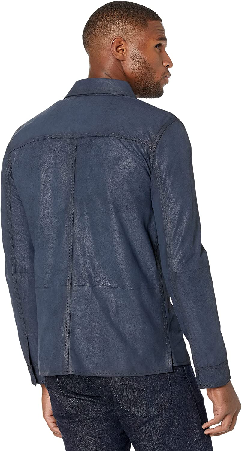 JOHN VARVATOS Men's Izzy Leather Shirt Jacket, Concealed Snaps