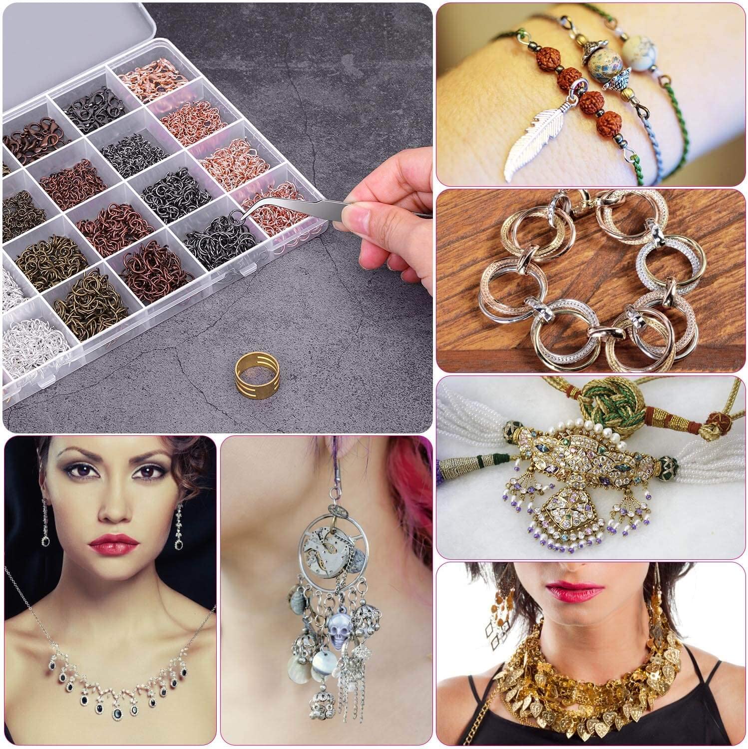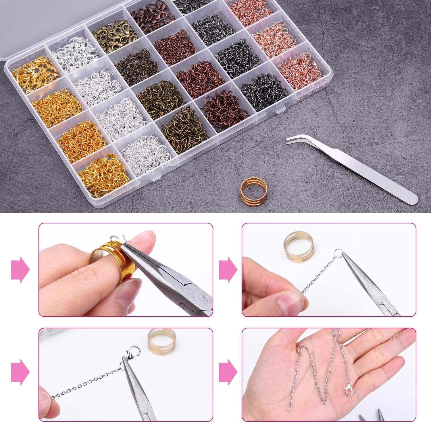 - 600 pieces 8mm open jump rings - a jump ring opener - a curved tweezers