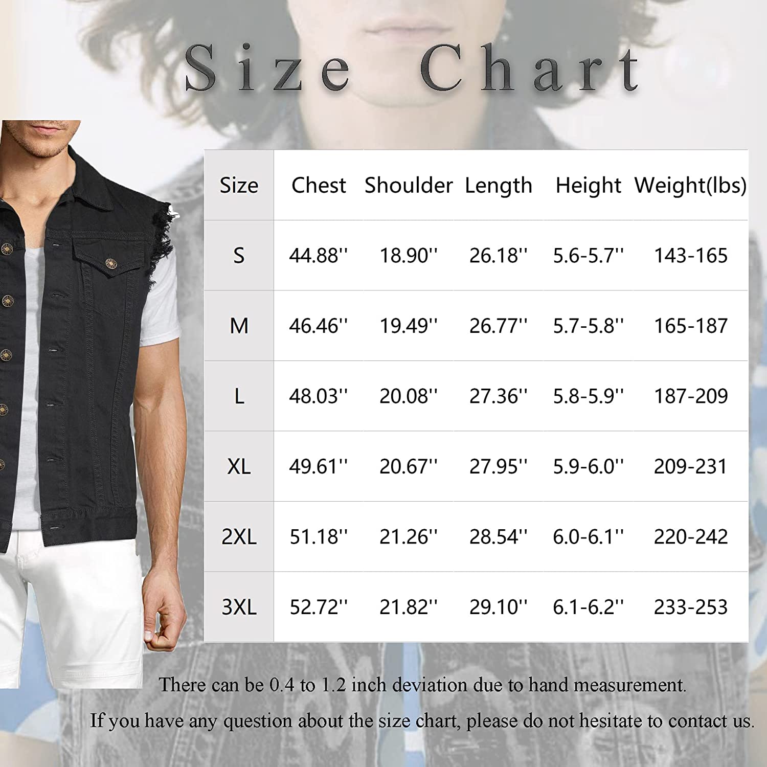 JYG Mens Casual Denim Vest Classic Trucker Button-Down Sleeveless Jean Jacket