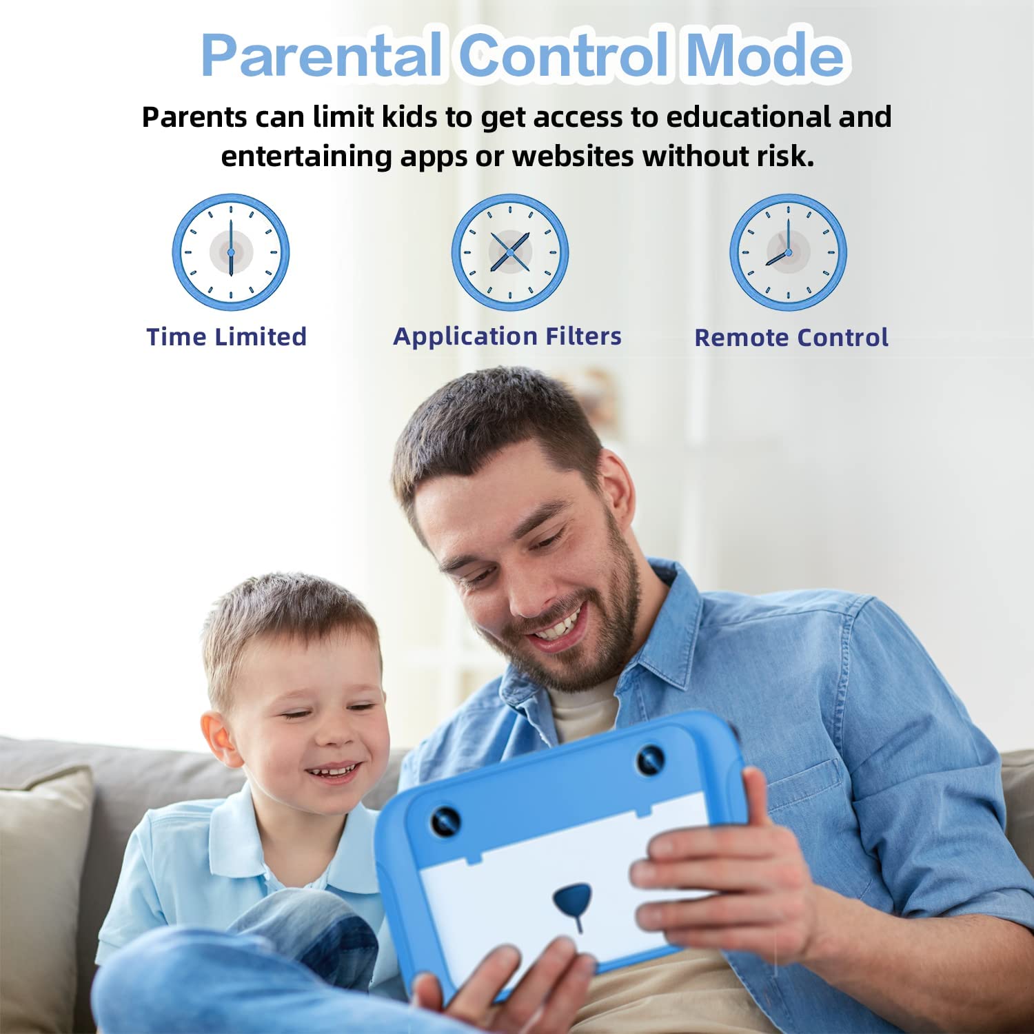 Kinstone 7 inch Kids Tablet with Parental Control,Lovely Android 11 Tablets PC Quad Core 32GB Memory Storage 2GB RAM Dual Camera Google Certified WiFi Bluetooth 4.2 ages3-12(Blue)