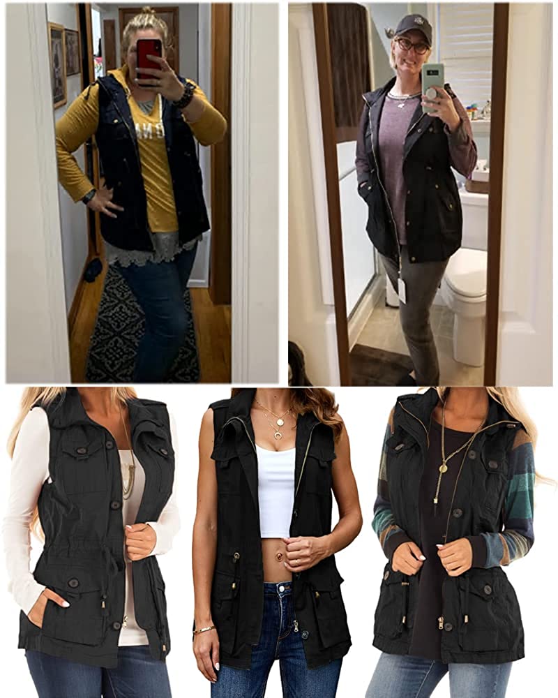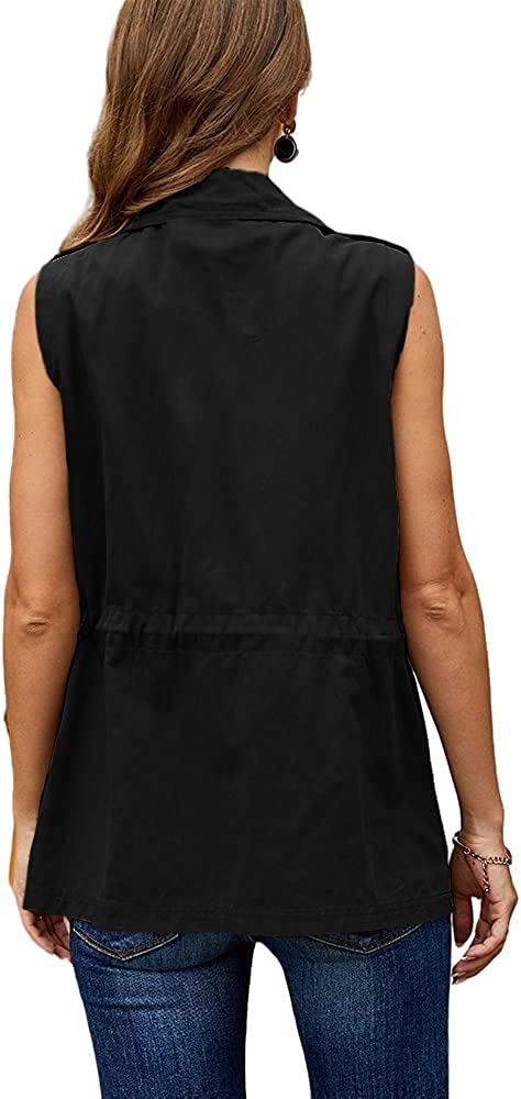 Koodred Women's Casual Military Utility Vest Lightweight Sleeveless Drawstring Jackets with Pockets