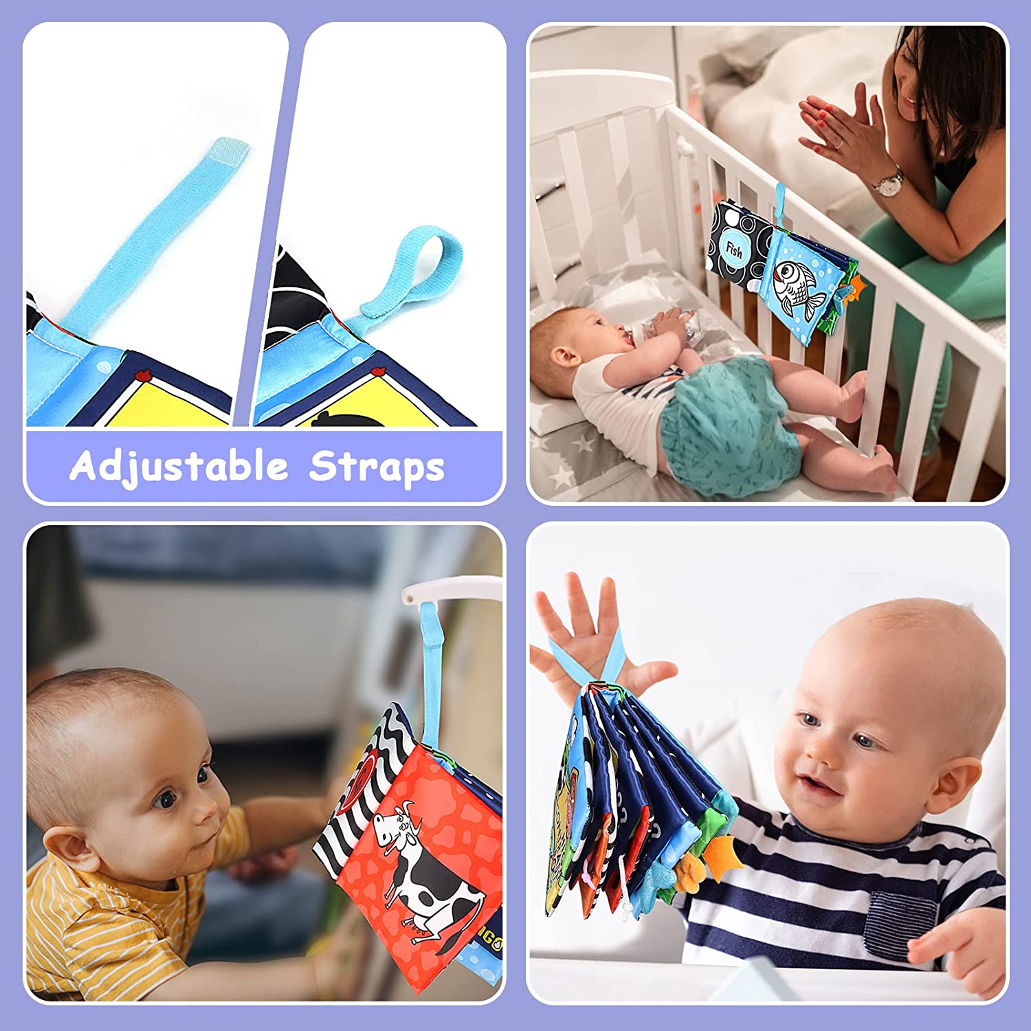 KUANGO Baby Books Toys 0-6 Months, Touch and Feel Cloth Book Non Toxic High Contrast Black and White Crinkle Soft Book Toys for Infants Toddler 1 Year Old Boys & Girls (First Book)