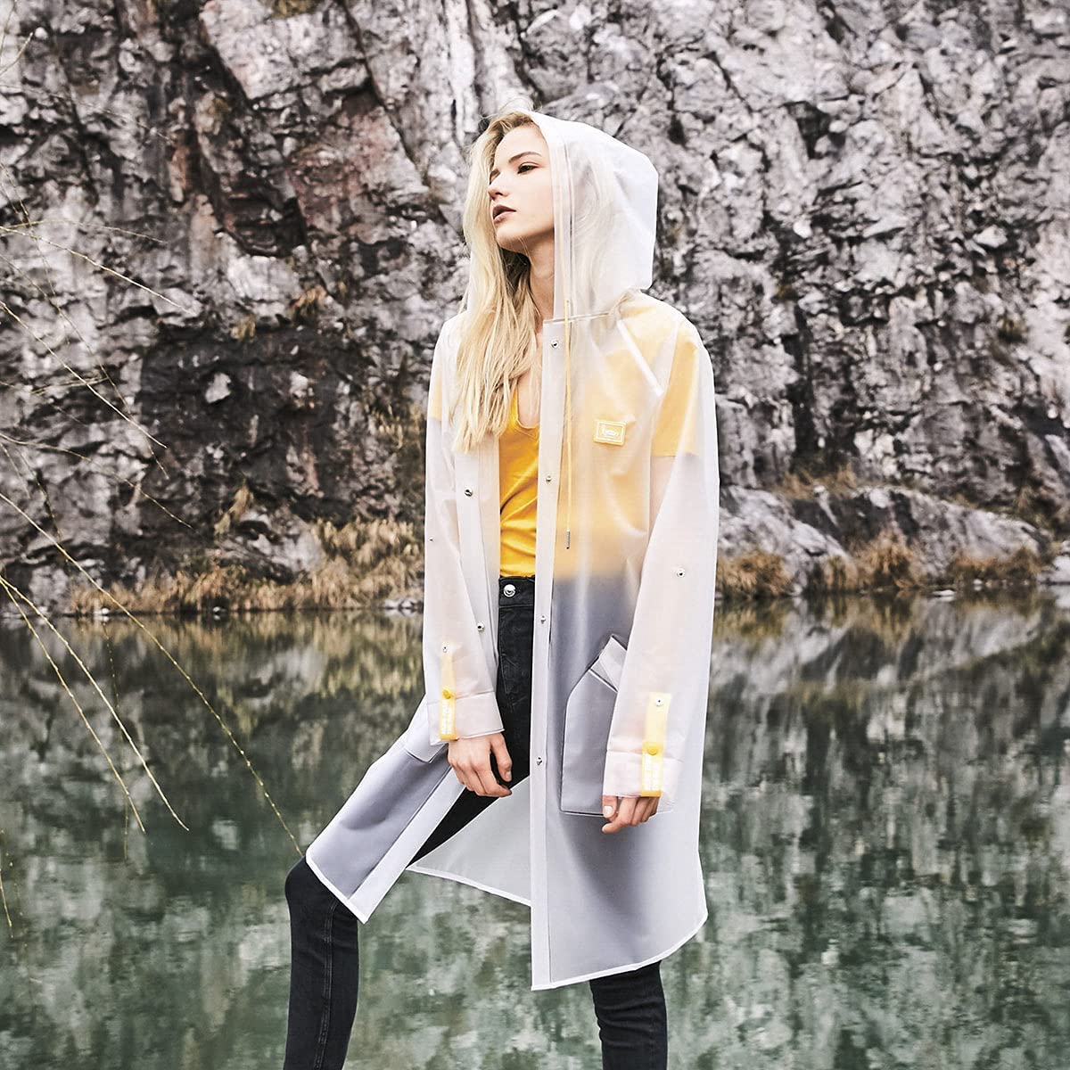 L-Rain Durable TPU Clear Rain Coat for Adults - Women and Men Fashion Hooded Rain Poncho