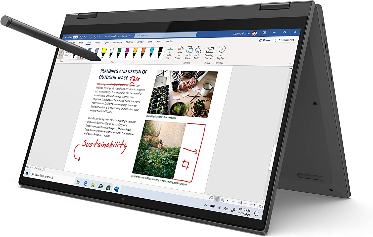 The Flex 5i laptop has everything you need to accessorize your lifestyle, including a physical privacy shutter on the webcam, a fingerprint reader for improved security, a backlit display, and digital pen support (pen sold separately). Use your Windows computer the way that works best for you, with the keyboard, the touchscreen, or your digital pen (pen sold separately). Plus, with the long battery life, you can get more done with up to 10 hours* of power; with Quick Charge, you can enjoy an additional 2 hours of battery life with just a 15-minute charge.