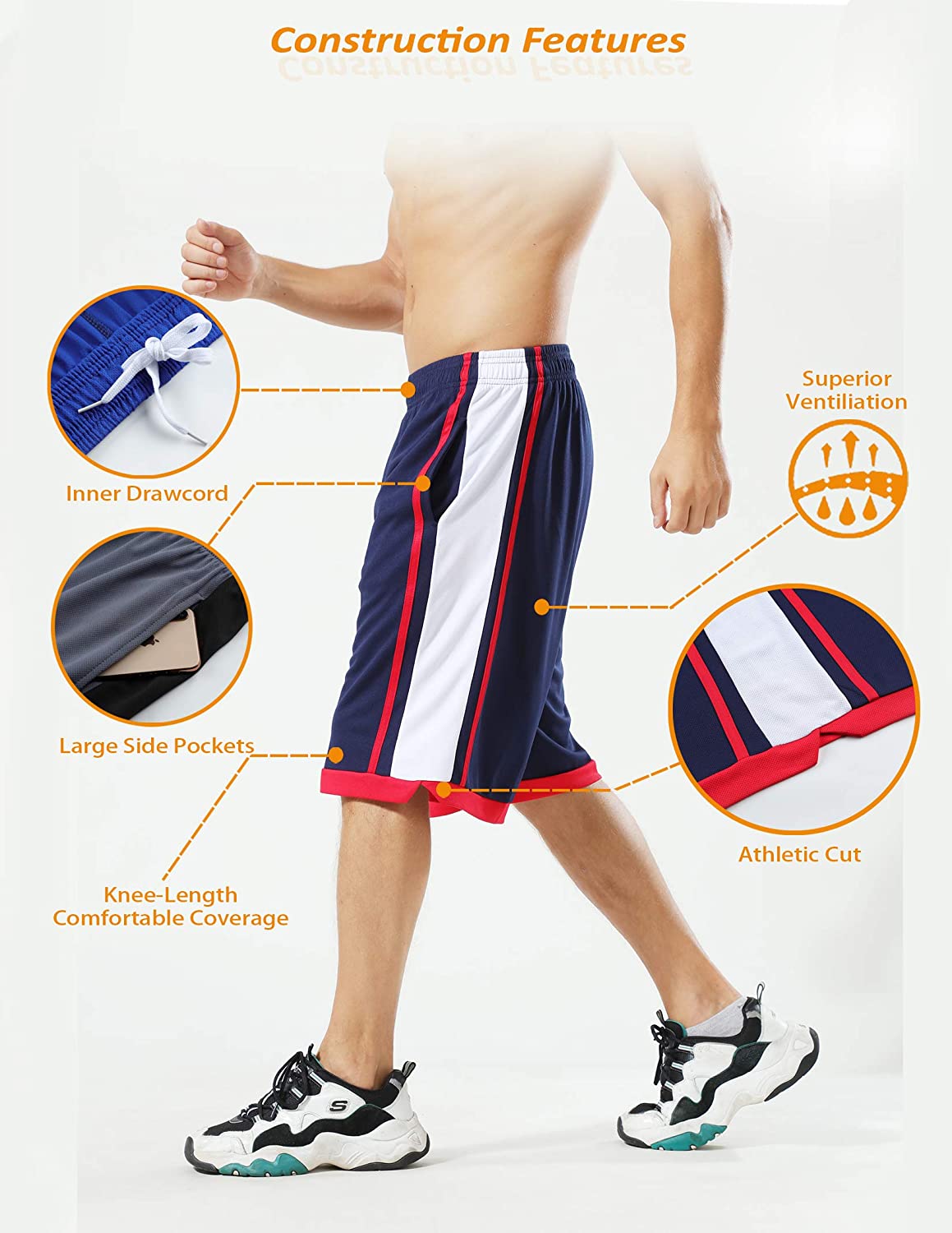 Liberty Imports Pack of 5 Men's Athletic Basketball Shorts with Pockets Mesh Quick Dry Activewear