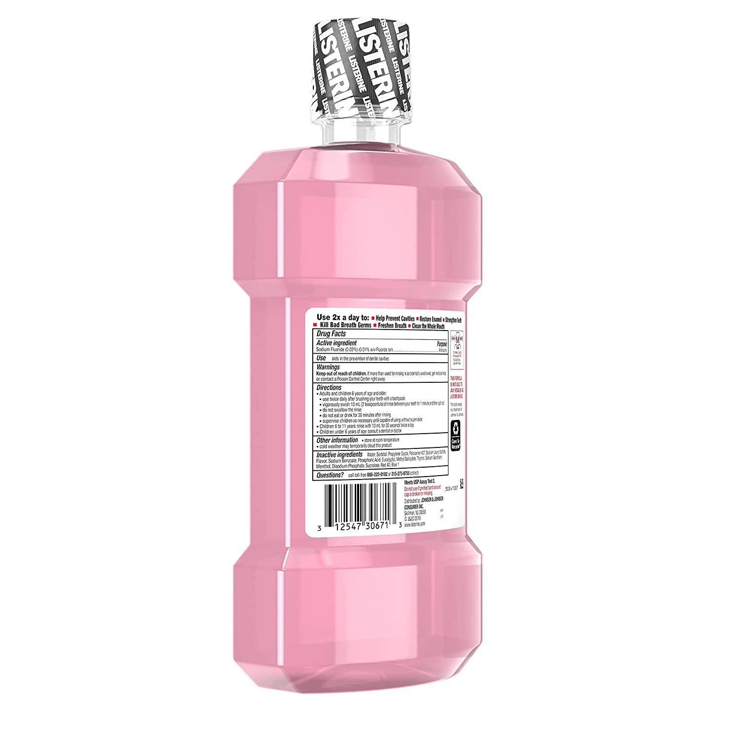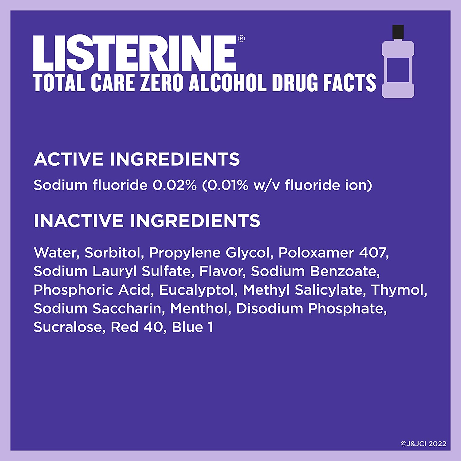 Give your mouth complete oral care with Listerine Total Care Zero Alcohol-Free Fluoride Anticavity mouthwash. Listerine Total Care Zero provides the same six dental hygiene benefits in one as Listerine Total Care Fluoride Anticavity Mouthwash, but in a less intense, alcohol-free mouthwash formula. With up to 2.4x the fluoride uptake than Act mouthwash brand**, this daily fluoride oral rinse formula helps prevent dental cavities by providing 50% greater strengthening of weakened enamel vs. brushing alone*. It freshens breath, kills 99% of germs that cause bad breath, cleans your whole mouth. From the #1 dentist-recommended brand of over the counter mouthwashes, this mouthwash for bad breath in Fresh Mint flavor gives your mouth a clean feeling you can taste, all with a zero alcohol formula. *In laboratory studies **In laboratory tests compared to Act Anticavity Fluoride Mouthwash, Act Total Care Anticavity Fluoride Mouthwash.