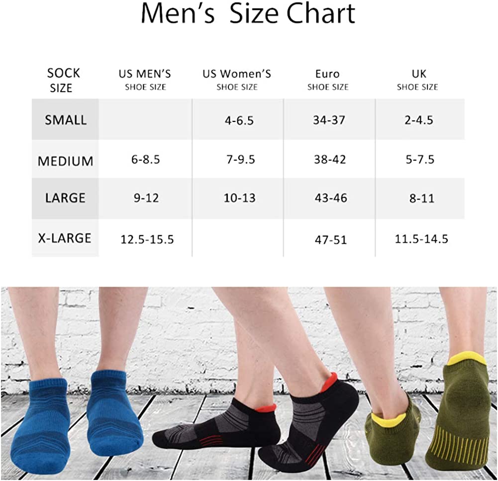 Mens Ankle Athletic Low Cut socks With Comfort Cushion for Running Tab Sock 6 Pack