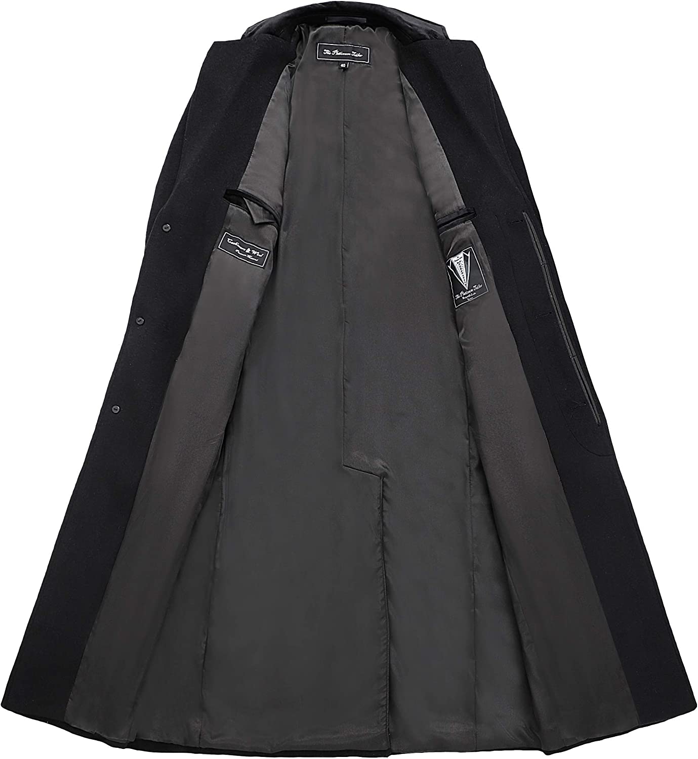 Mens Black Overcoat Wool & Cashmere Covert Warm Winter Mod Cromby Coat Velvet Collar & Black Satin Lining