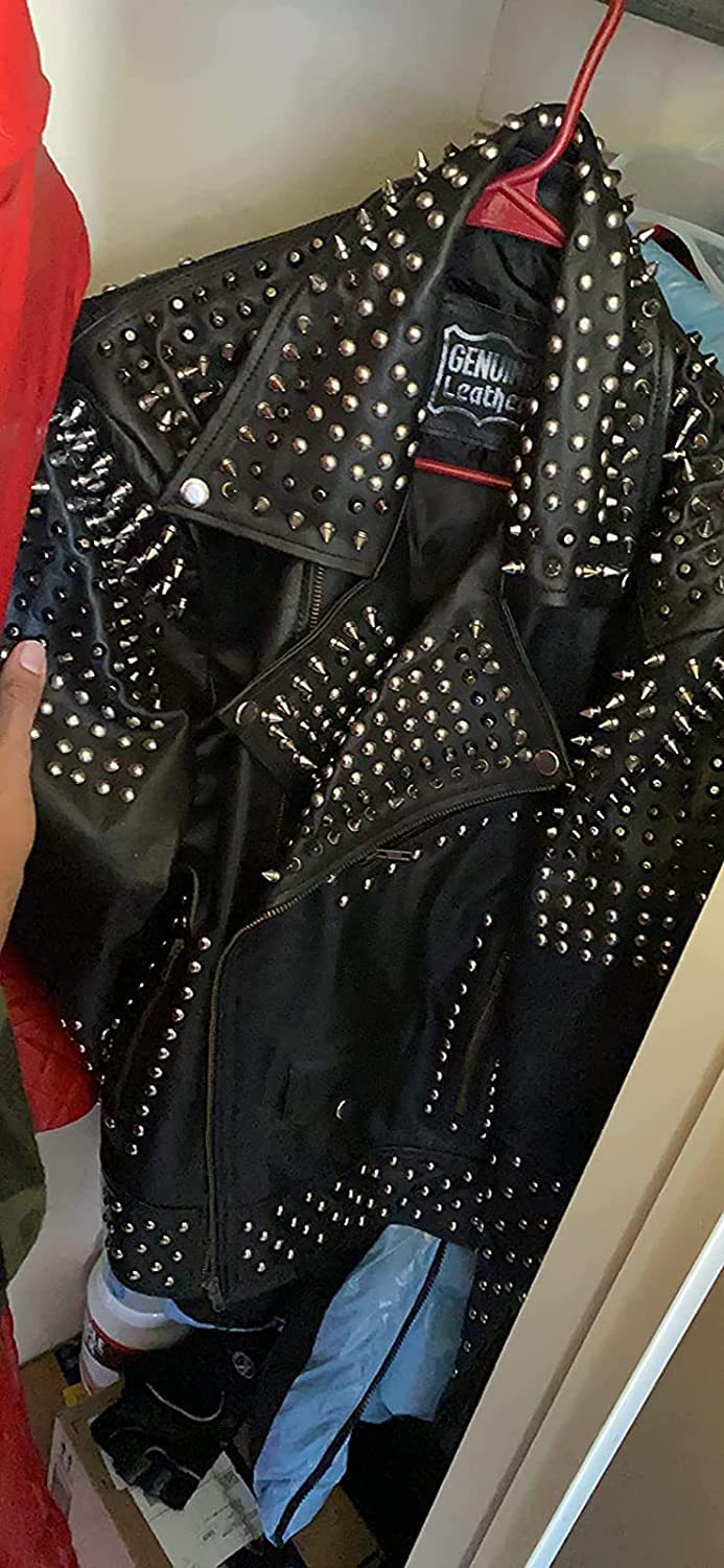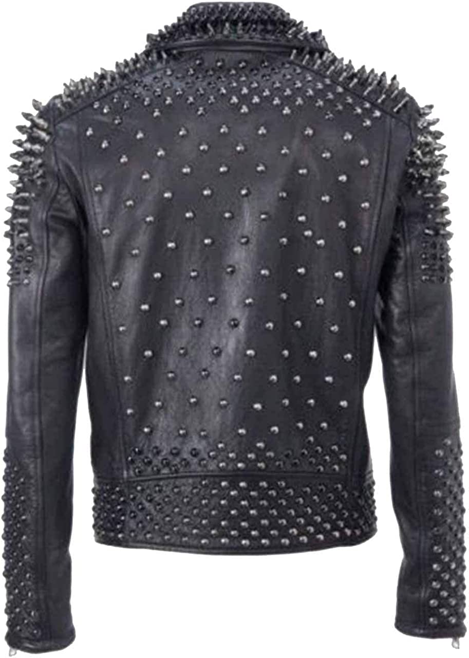 Mens Brando Motorbike Rock Punk Spike Studded Motorcycle Biker Leather Jacket