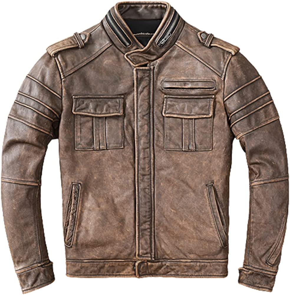 Mens Cafe Racer Jacket - Distressed Leather Jacket Men - Vintage Brown Leather Jacket - Genuine Lambskin Biker Jacket