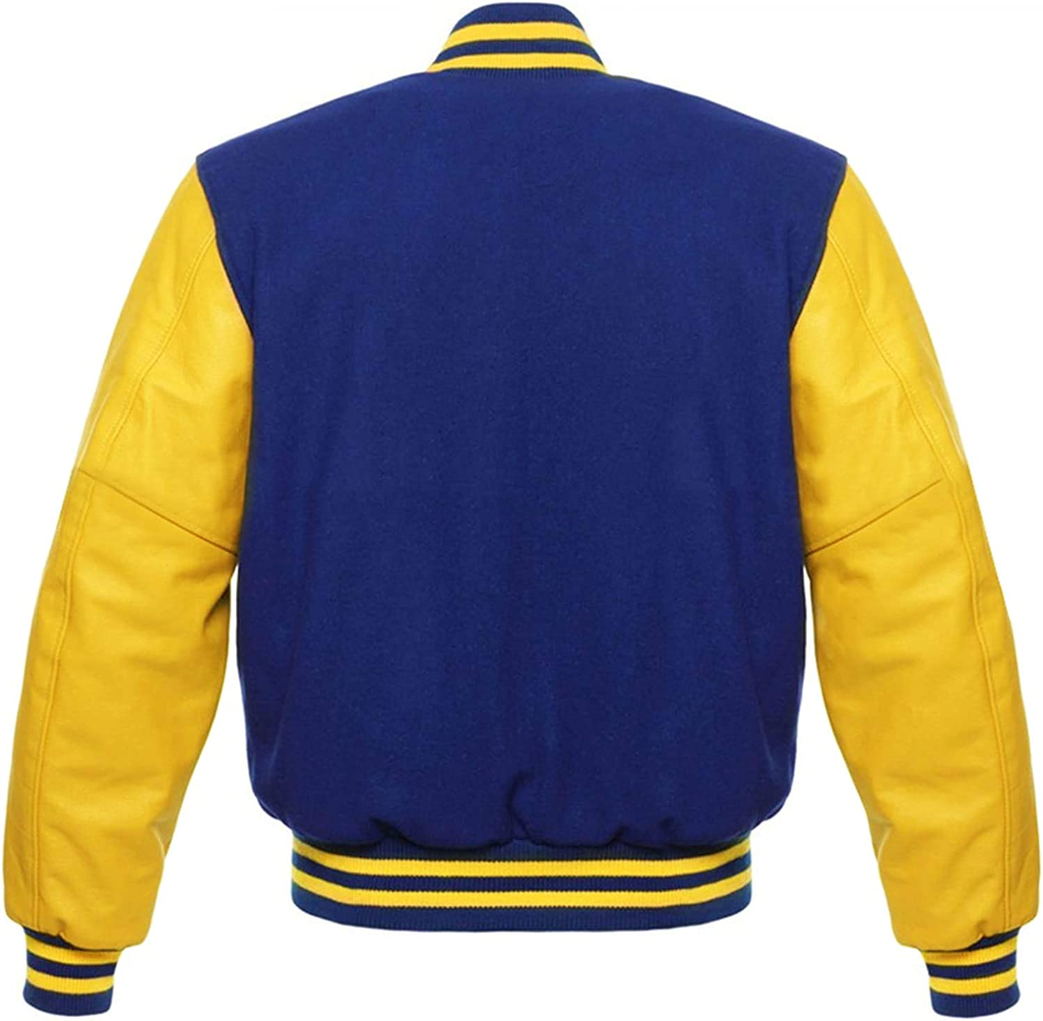 Mens TV Series Inspired High School Blue and Yellow R Logo Varsity Letterman Bomber Jacket