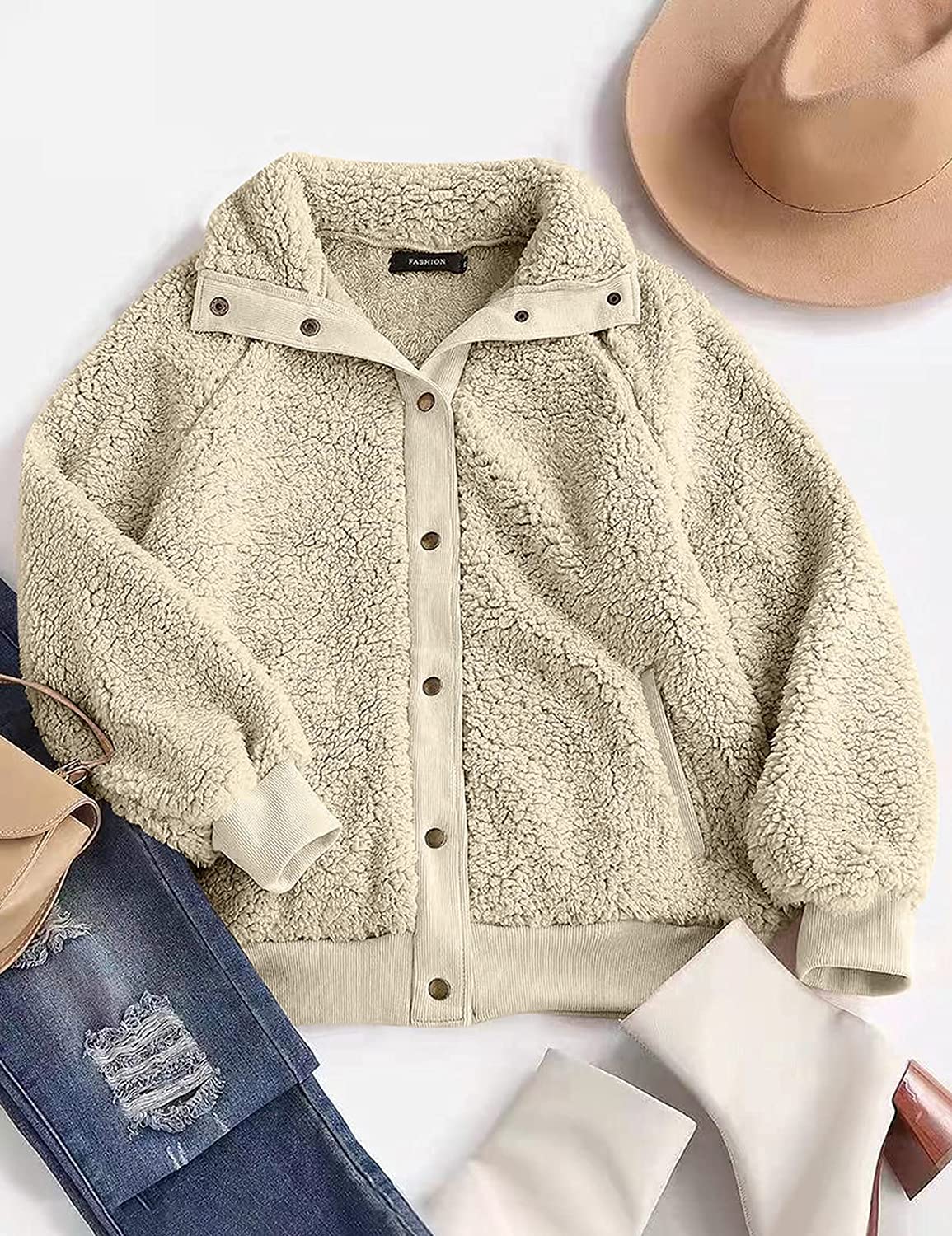 MEROKEETY Womens Winter Long Sleeve Button Sherpa Jacket Coat Pockets Warm Fleece