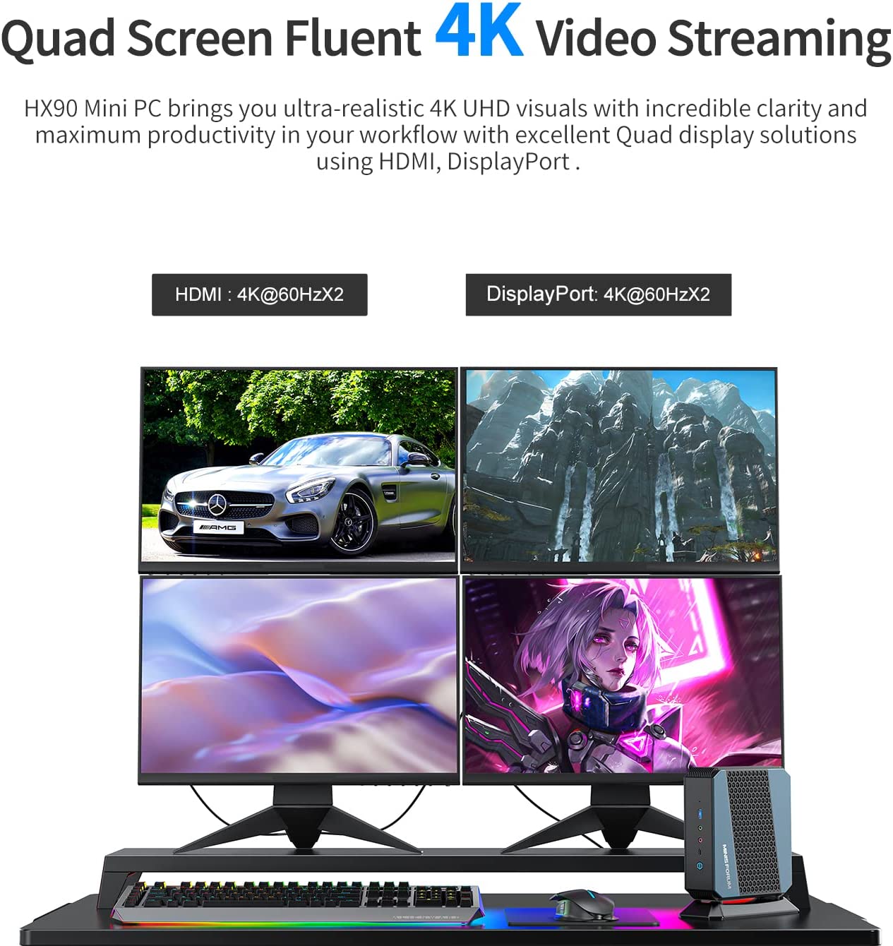 Mini PC Windows 11 Pro HX90 AMD Ryzen 9 5900HX 8 Cores up to 4.6 GHz| 32 GB RAM 512 GB PCIe SSD | Radeon Graphics | Dual WiFi Bluetooth | 4K HDMI X2/ DisplayPort X2| 1X RJ45 |5X USB 3.0