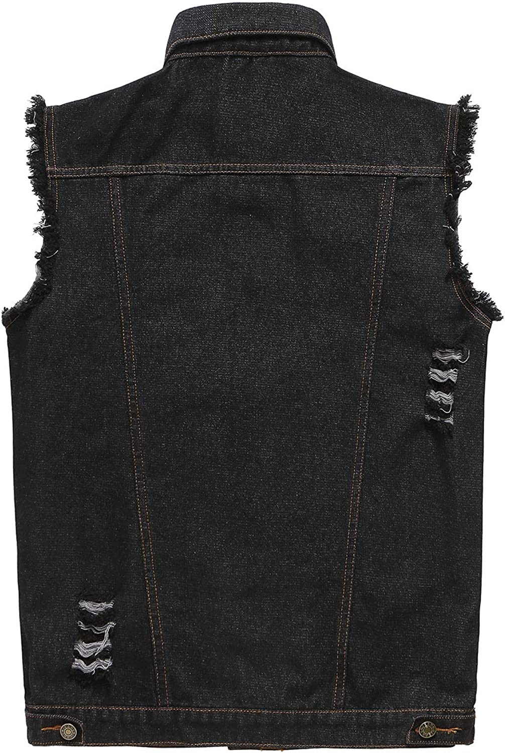 NASKY Men's Fit Retro Ripped Denim Vest Sleeveless Jean Vest and Jacket