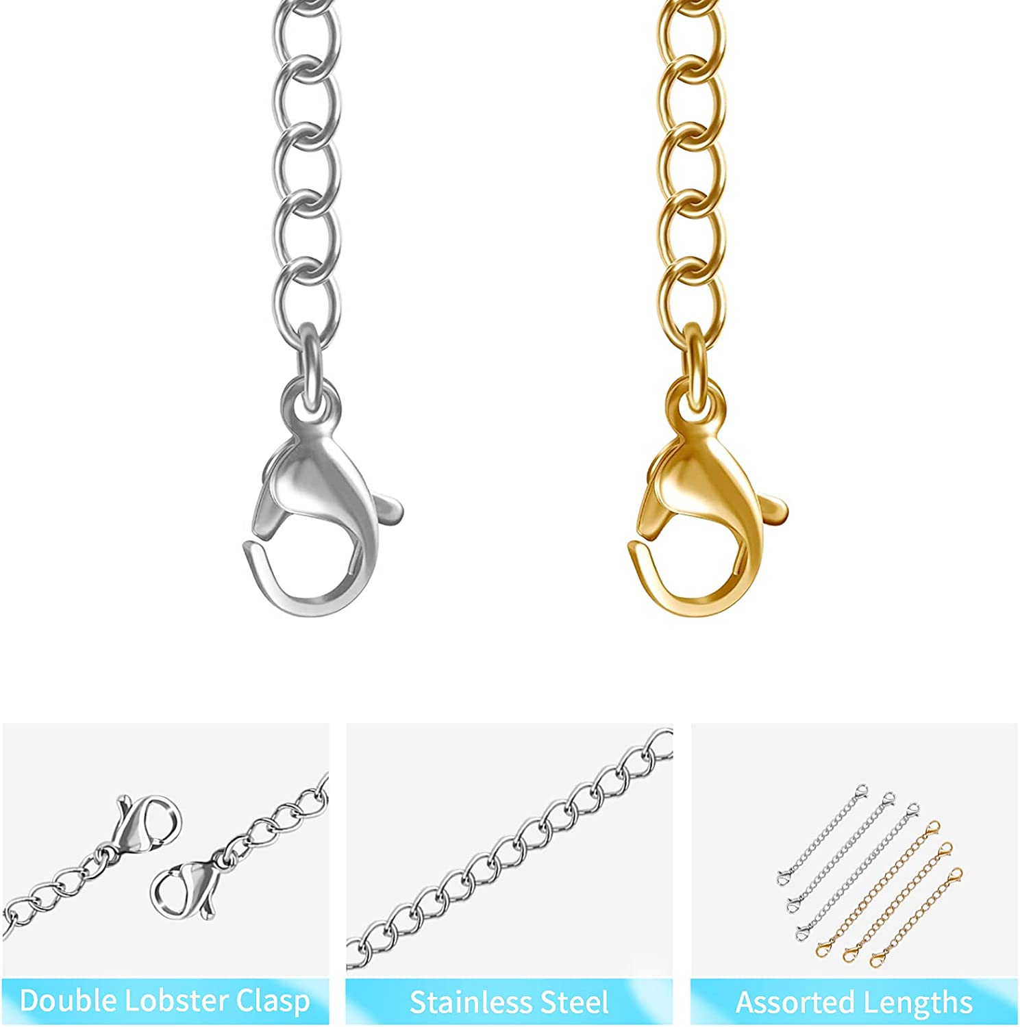 2 Colors: 5 pcs gold necklace extenders, 5 pcs silver necklace extenders. Different sizes and colors to meet your different needs.