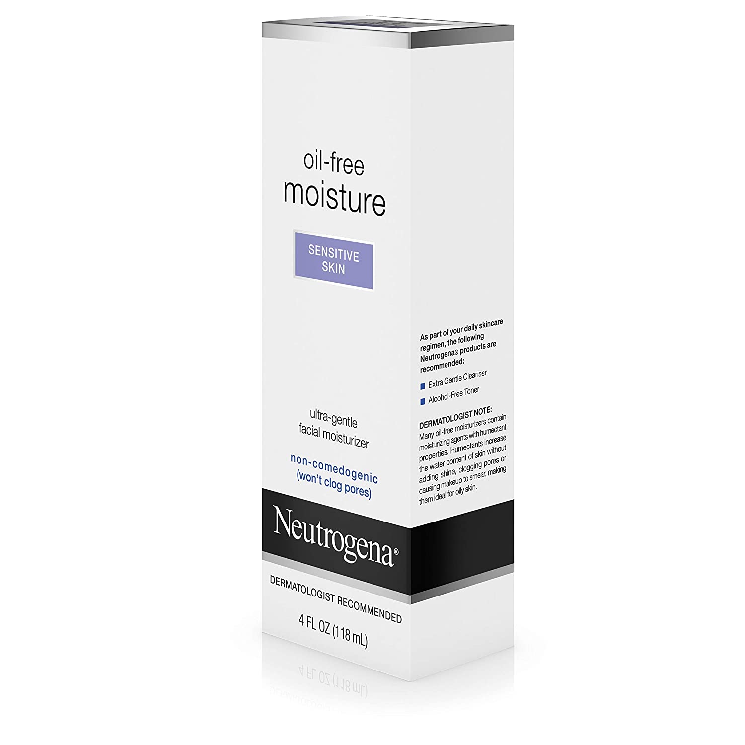Neutrogena oil free facial moisturizer for sensitive skin is a lightweight, water based moisturizer that is clinically proven to provide gentle yet effective moisturization for even the most sensitive skin. Its unique formula absorbs quickly into skin, eliminating dryness without leaving skin greasy or shiny. Made for sensitive skin, this gentle moisturizer contains no fragrances, dyes, or alcohol.Active ingredients : avobenzone (1.5 percent), octisalate (5 percent), octocrylene (3 percent), oxybenzone (4 percent).
