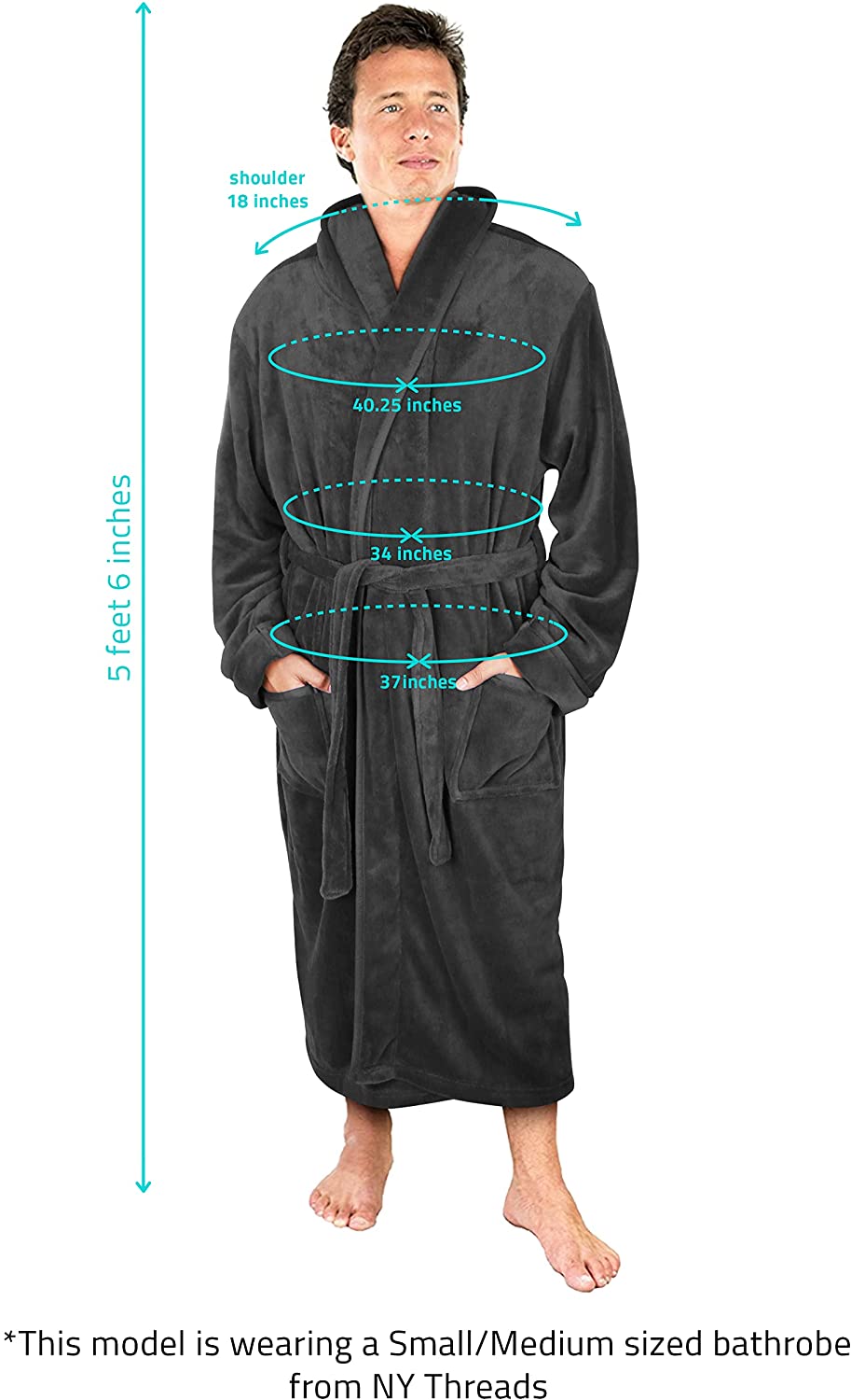 NY Threads Luxurious Mens Shawl Collar Fleece Bathrobe Spa Robe