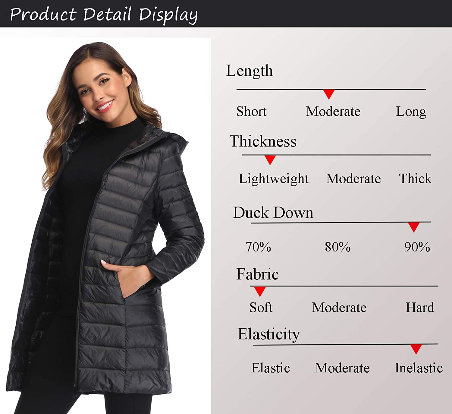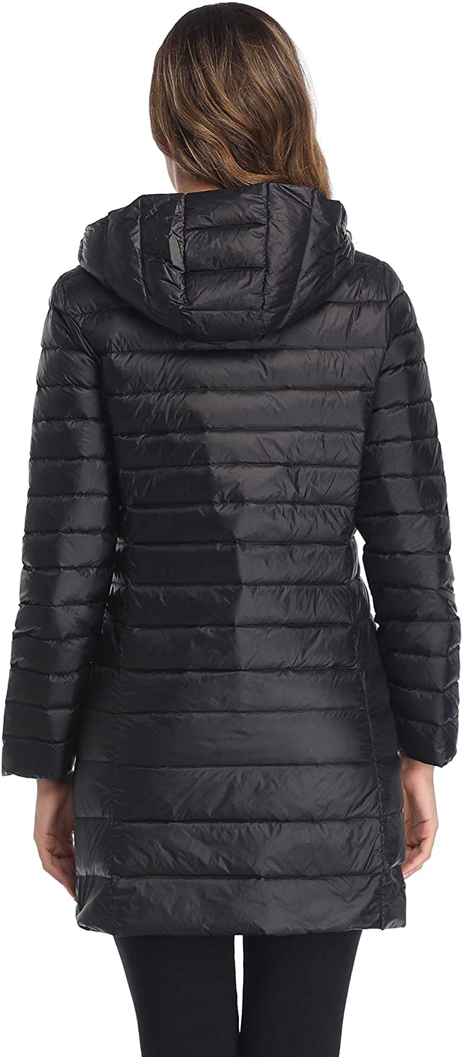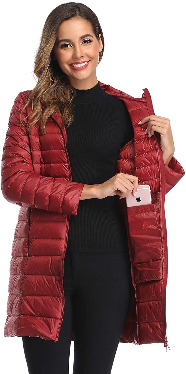 Obosoyo Women's Winter Packable Down Jacket Plus Size Ultralight Long Down Outerwear Puffer Jacket Hooded Coat