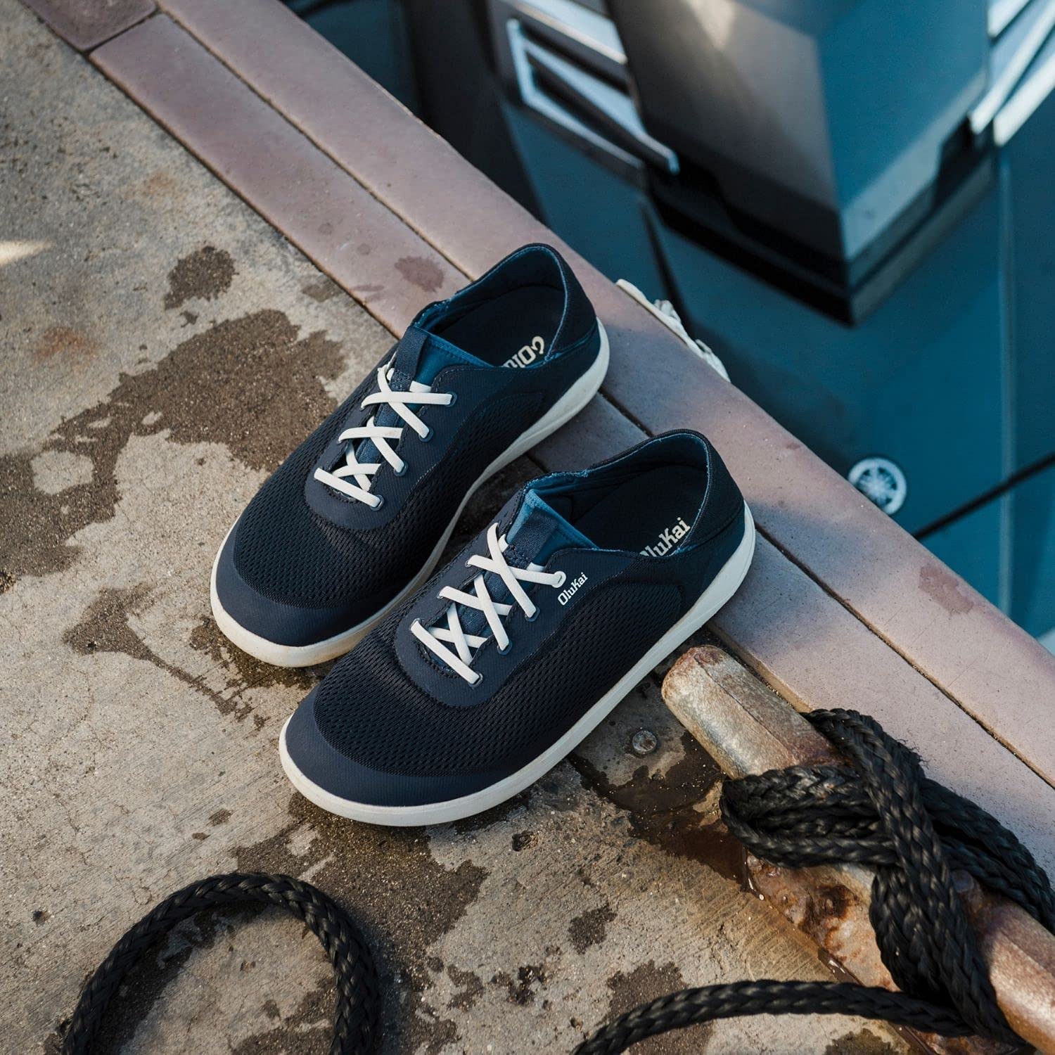 Built for ocean adventures our Moku Pae brings a modern approach to the traditional boat shoe. Constructed with breathable mesh for barefoot wear, signature Drop-In-Heel for easy/off and non-marking rubber outsole.