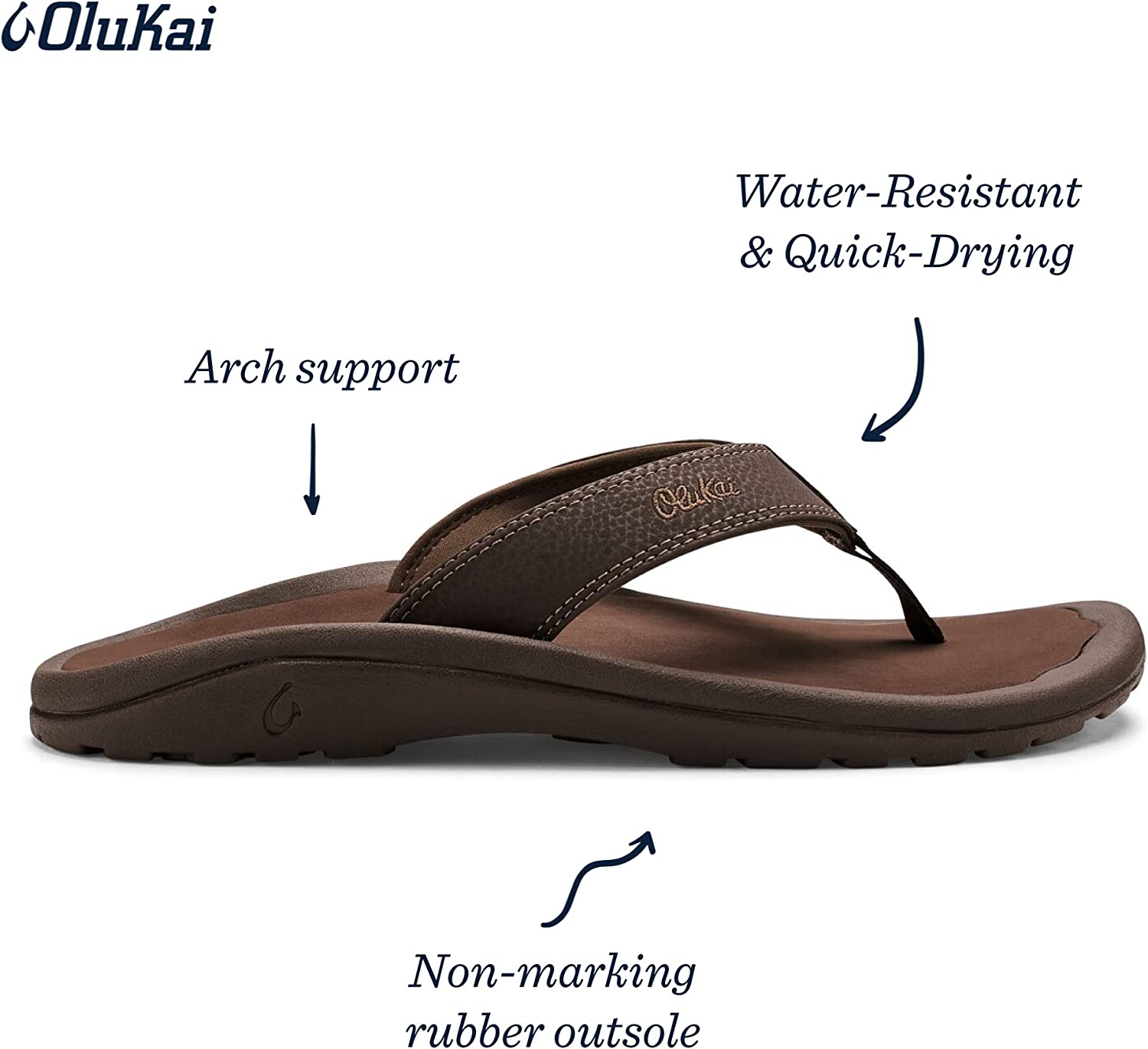 OluKai Ohana Men's Beach Sandals, Quick-Dry Flip-Flop Slides, Water Resistant & Lightweight, Compression Molded Footbed & Ultra-Soft Comfort Fit