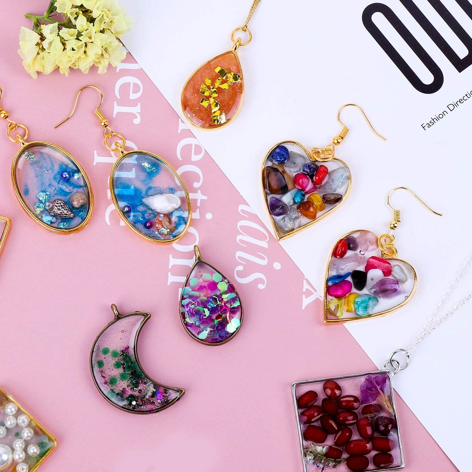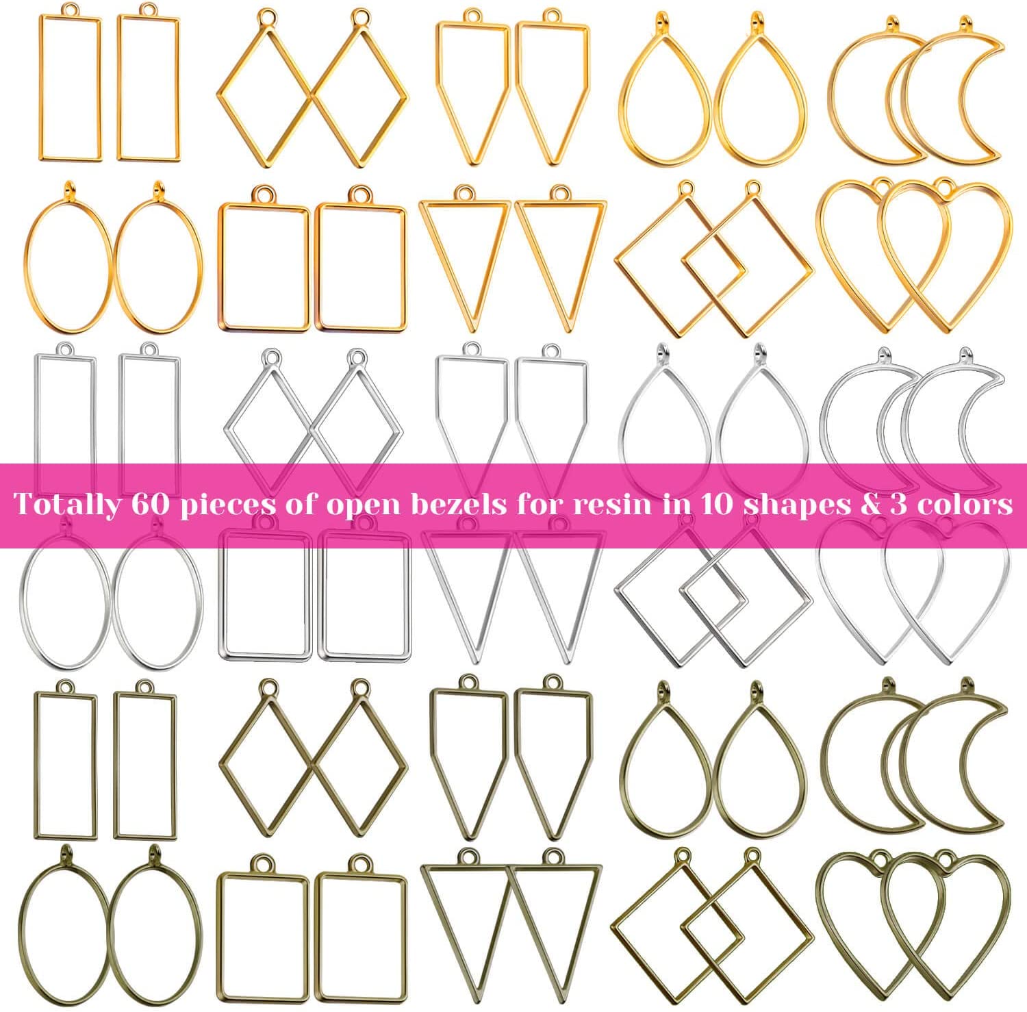 60 pieces resin craft bezel in 10 shapes and 3 colors
