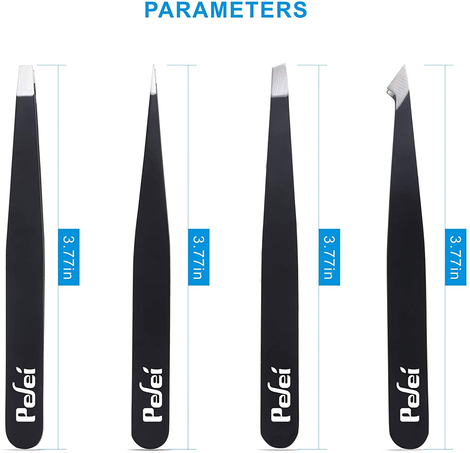 Pefei Tweezers Set - Professional Stainless Steel Tweezers for Eyebrows - Great Precision for Facial Hair, Splinter and Ingrown Hair Removal (Black)