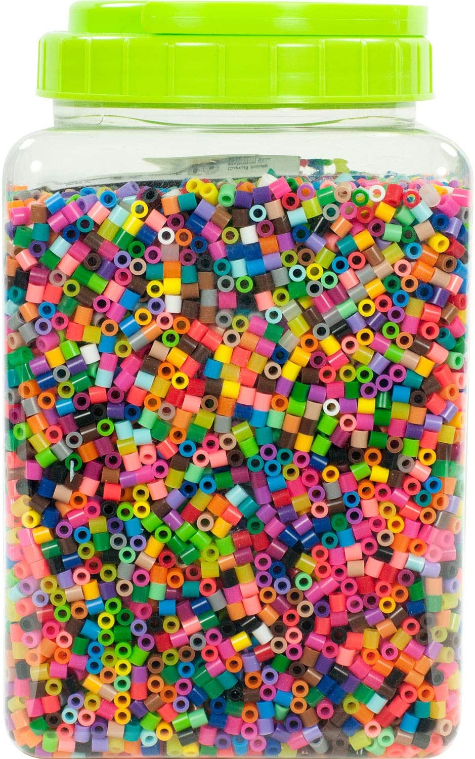 Perler Plastic 22,000 assorted multi-mix bead jar. With plenty of beads and a wide variety of colors, these Perler Beads will keep you busy for hours! Designed to be used with Perler pegboards, these easy-to-use beads can be strung together to create lots of designs. For ages 5 and up.