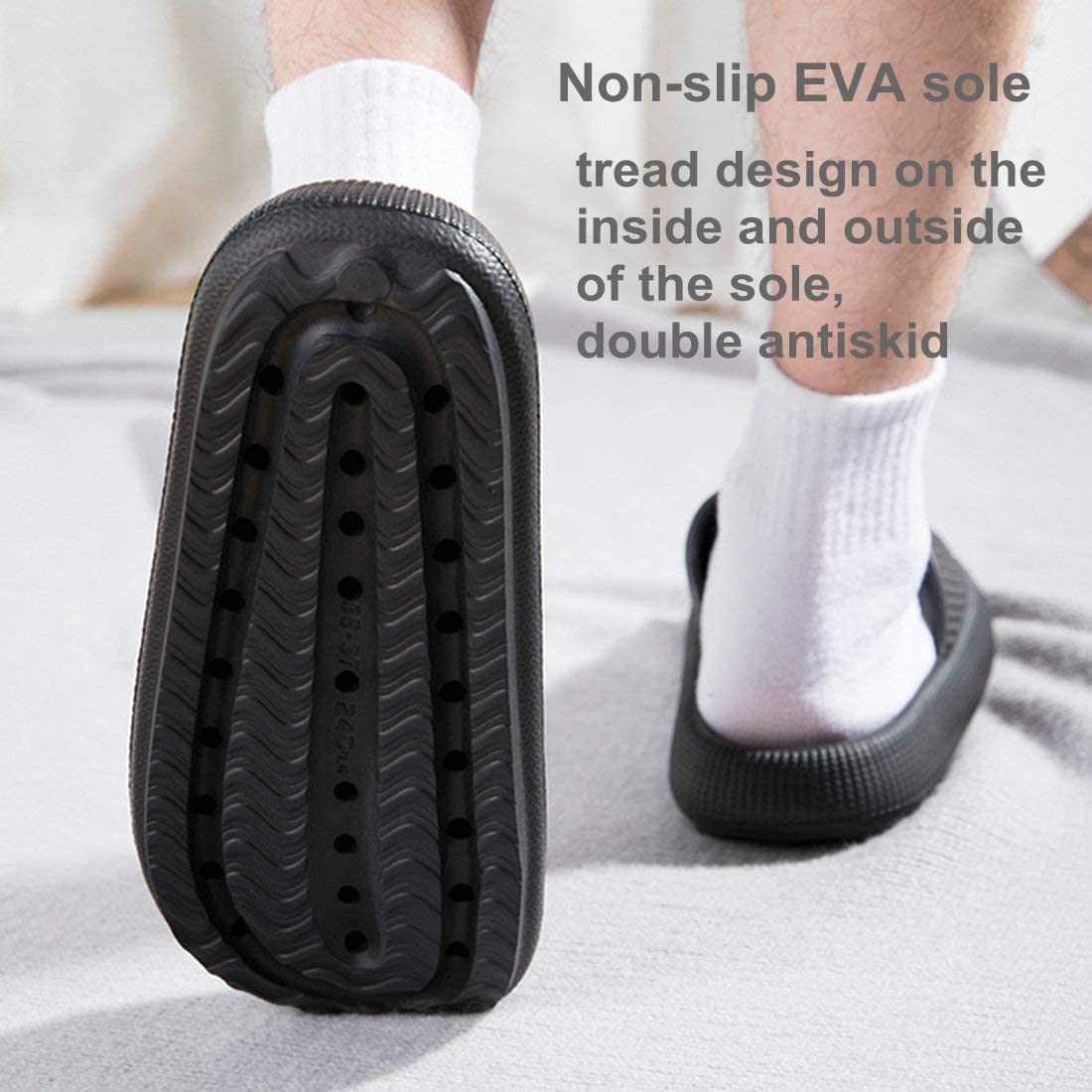 Pillow Slippers, Unisex Shower Bathroom Slipper EVA Massage Foam Super Soft Non-Slip Quick Drying Thick Sole Sandals,Black Open Toe Home Slippers for Women and Men