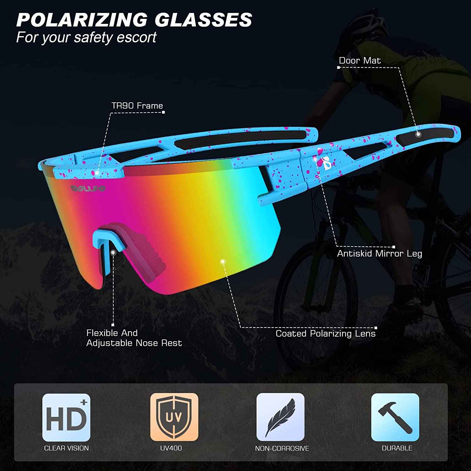 Polarized Sports Sunglasses,UV400 Protection Outdoor Glasses for Men Women Youth Baseball Cycling Running Driving Golf