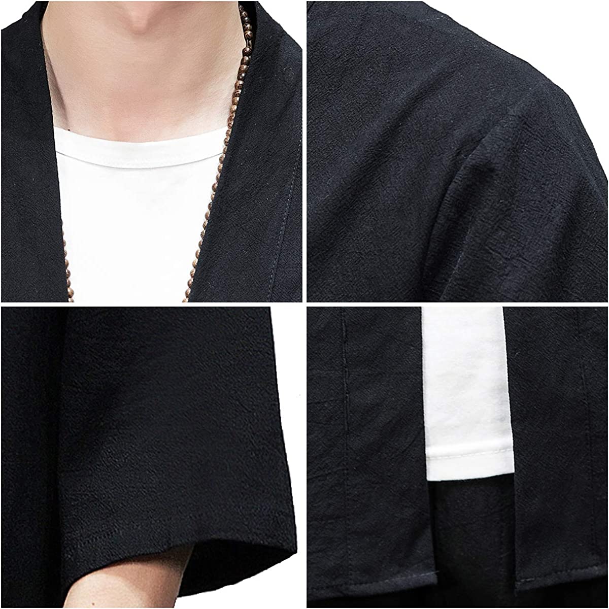 PRIJOUHE Men's Kimono Jackets Cardigan Lightweight Casual Cotton Blends Linen Seven Sleeves Open Front Coat Outwear