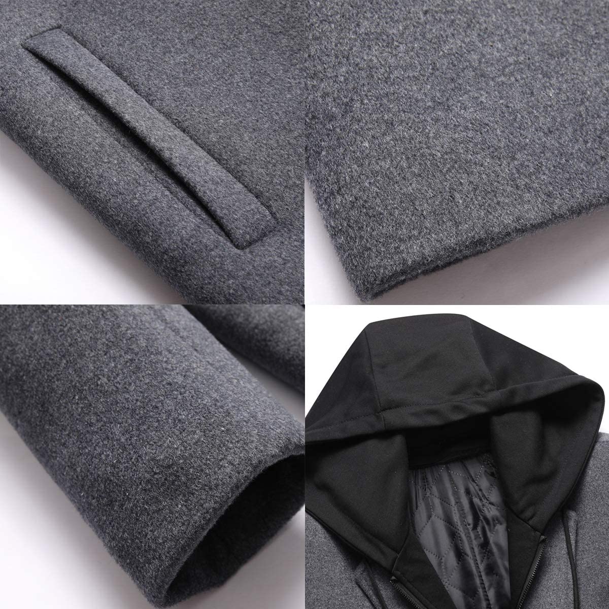 PRIJOUHE Men's Wool Coat Hoodie Long Trench Coat Cotton Casual Woollen Overcoat Jacket