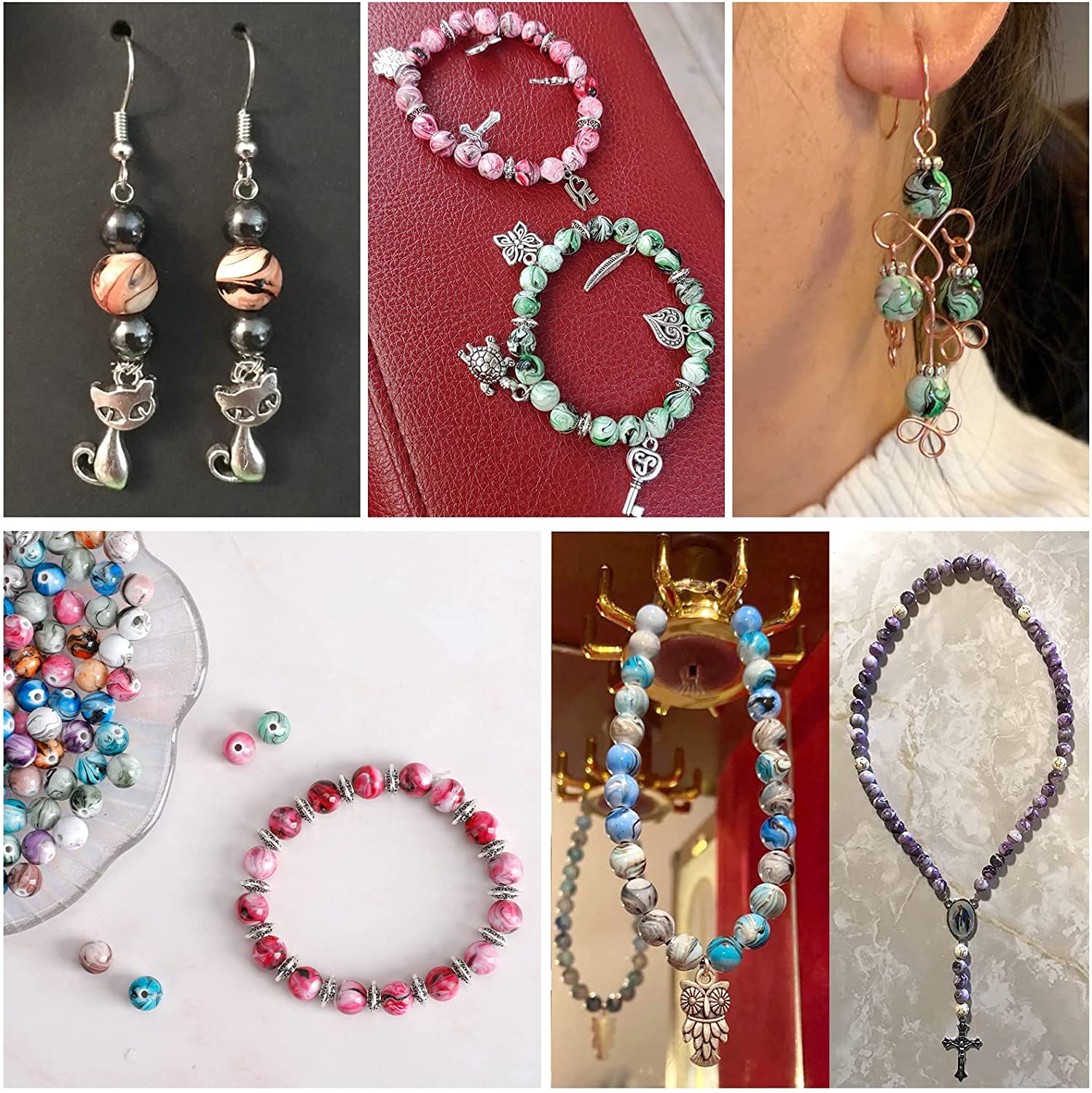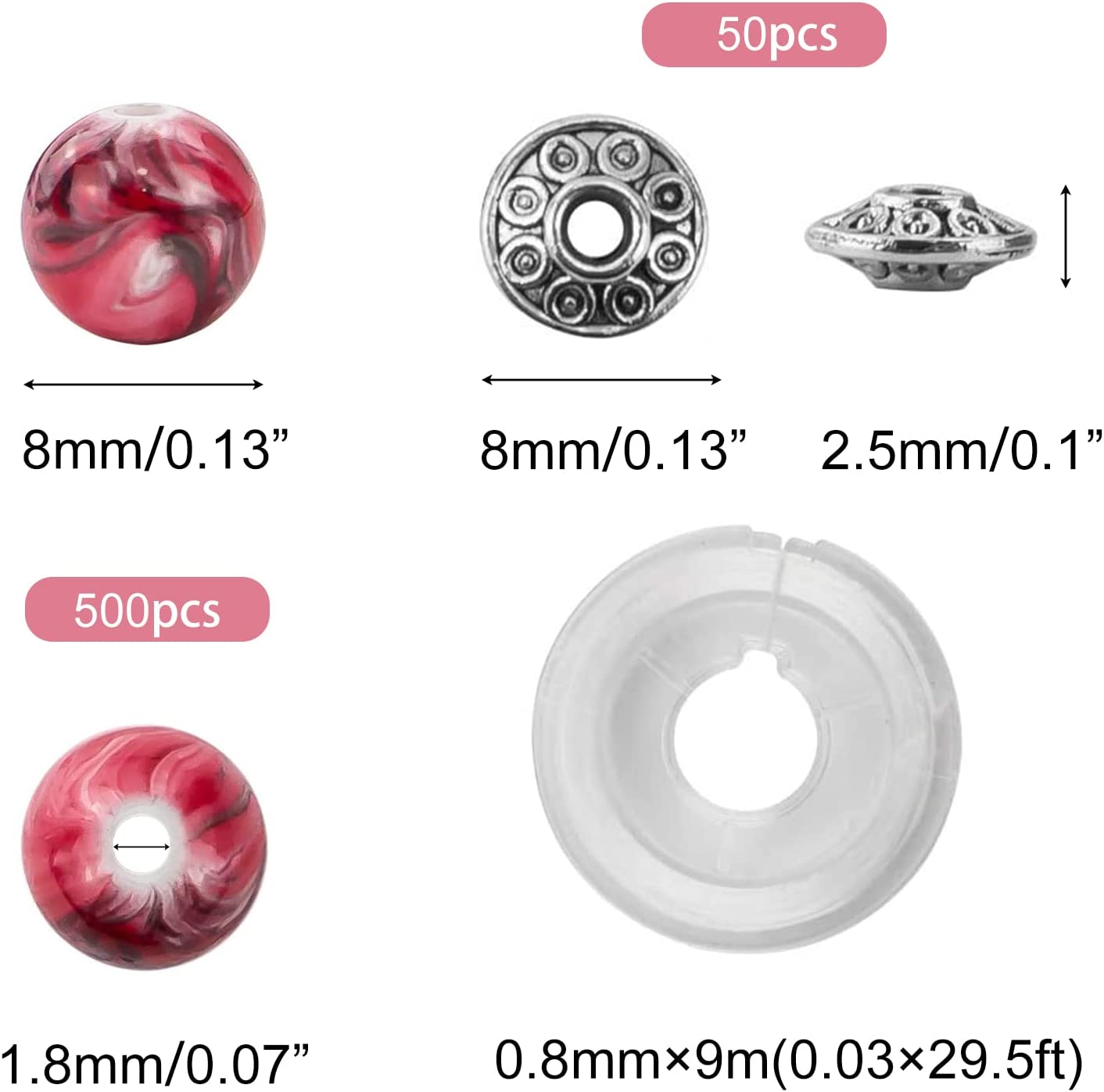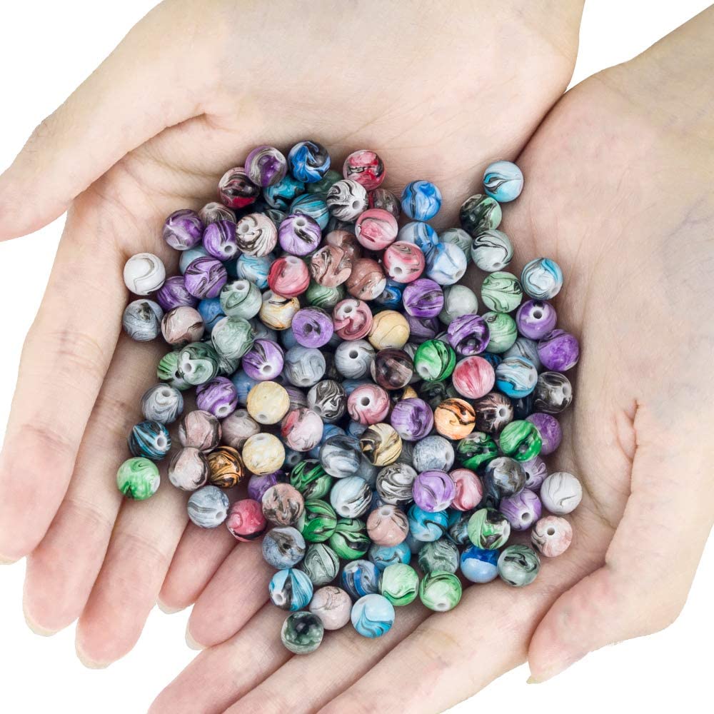 Quefe 500pcs Craft Beads for Jewelry Making, for Bracelets Making,Space Acrylic Beads in Ink Patterns with 50pcs Spacer Beads and Crystal String (8mm)