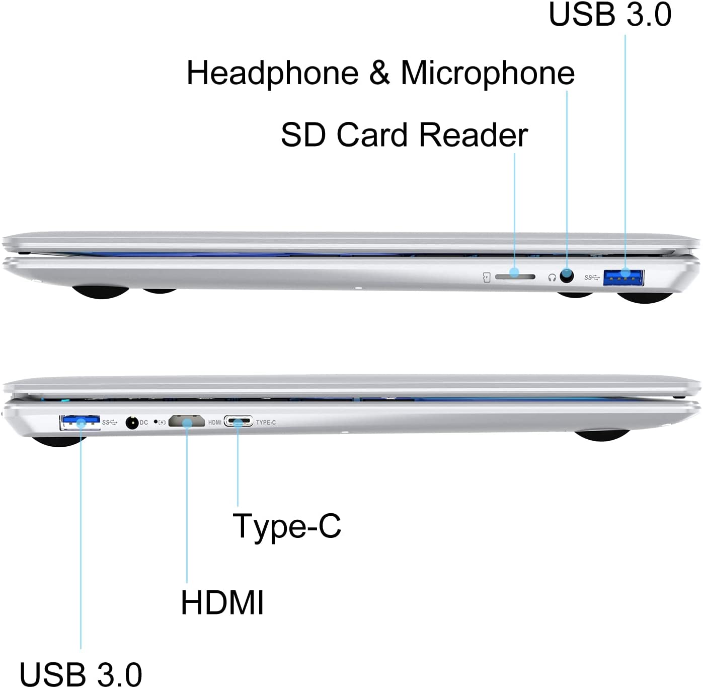 RICILAR Windows 10 Home Laptop, 14.1 Inch HD Display, Intel Celeron N4020, 4GB RAM, 128GB SSD, Backlit Keyboard, Type C, HDMI, Wi-Fi 5, Silver, School Laptop Computer for Students and Business