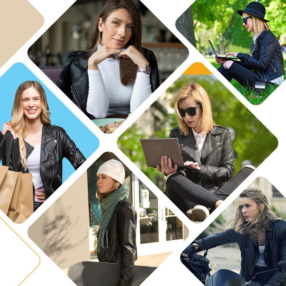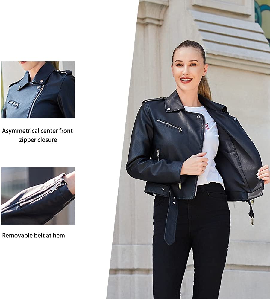 RIJING Women's Faux Leather Jacket Zip Up PU Moto Biker Jacket Casual Slim Short Coat Lightweight Pleather Outwear