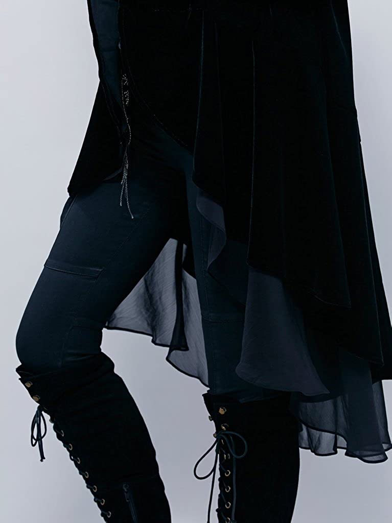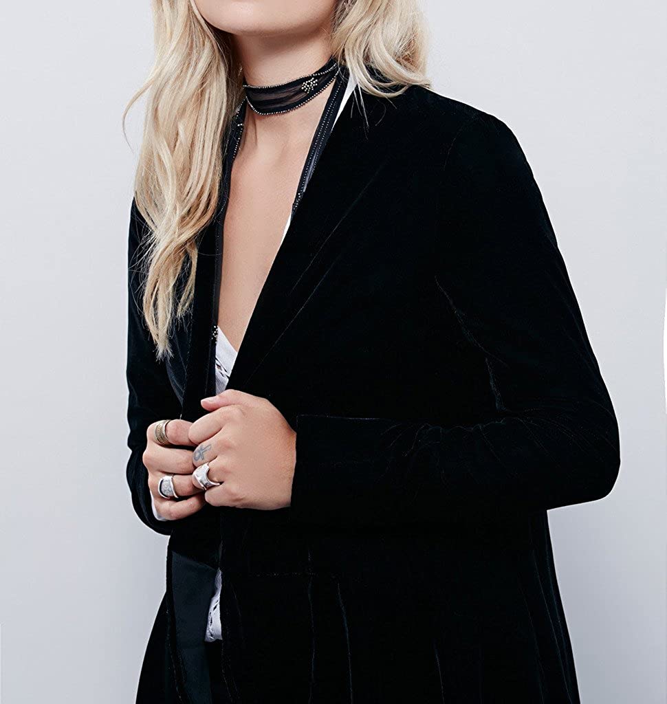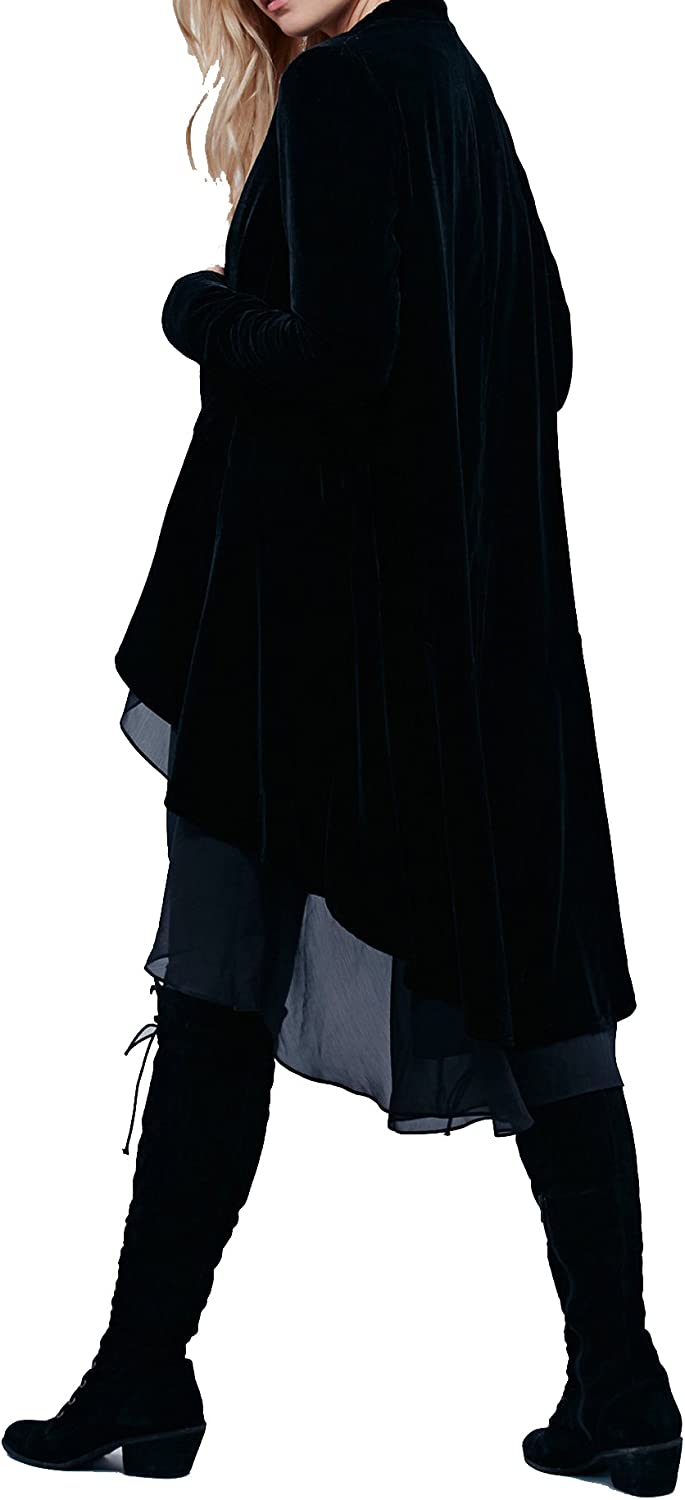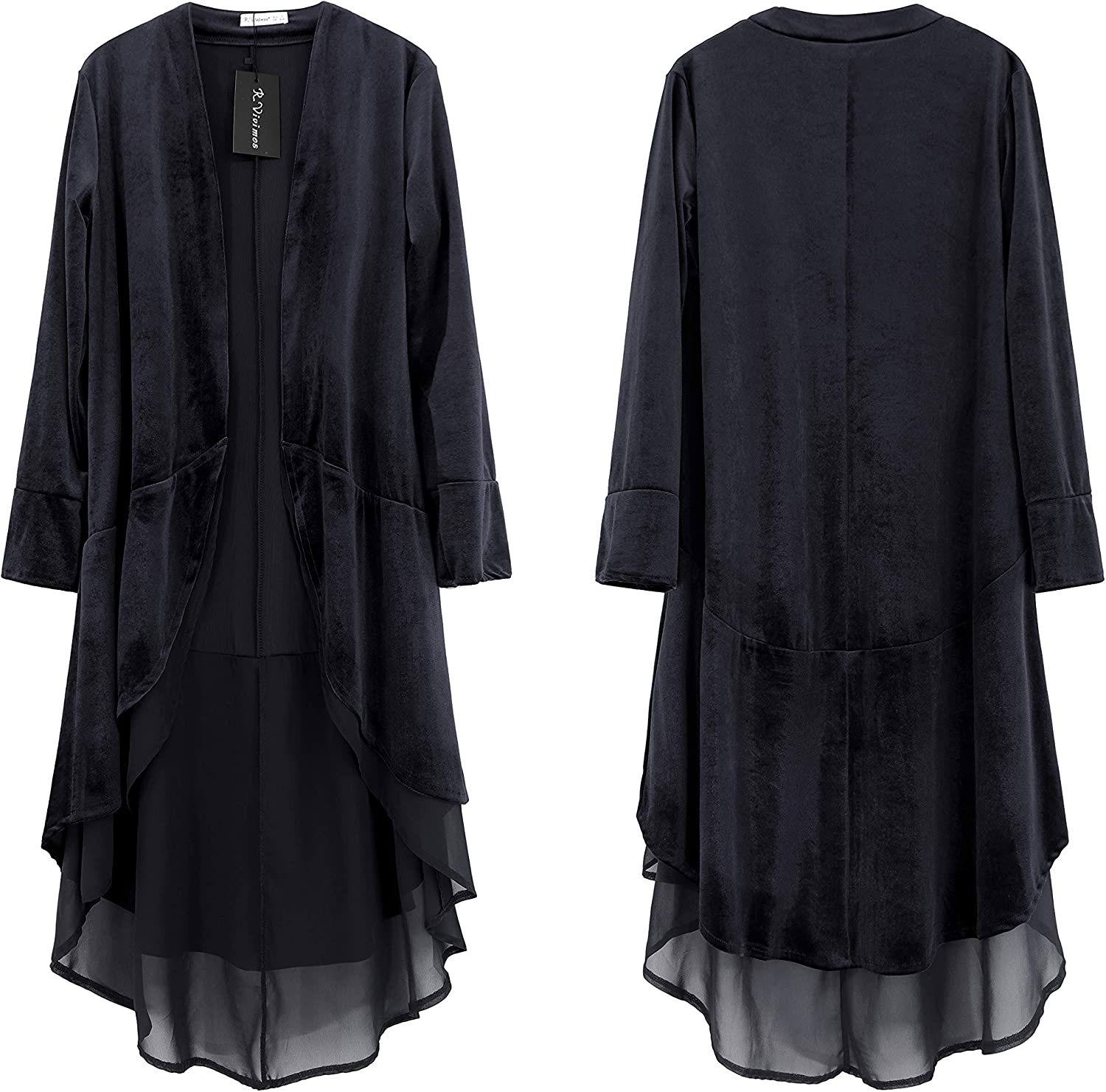 R.Vivimos Womens Ruffled Asymmetric Long Velvet Blazers Coat Casual Jackets