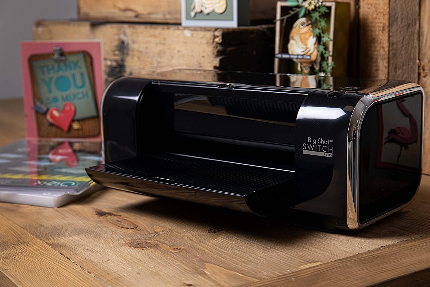The brand-new sleek black Big Shot™ Switch Plus electric die-cutting machine inspired by Tim Holtz® is a must have for any crafter! This innovative, stylish, and compact machine features a smooth automated feed and includes a one touch reverse switch, empowering you to die-cut with ease. With a 9” (A4) opening and full width sensor allowing this versatile machine to be used with all Sizzix technologies including the popular Bigz™ dies as well as all cutting pad sizes, this machine really does offer unlimited creative possibilities. With a bold, eye-catching, and neat design as well as a handy compartment to store your essential tools and dies, this machine is sure to add a real wow-factor to any craft room!