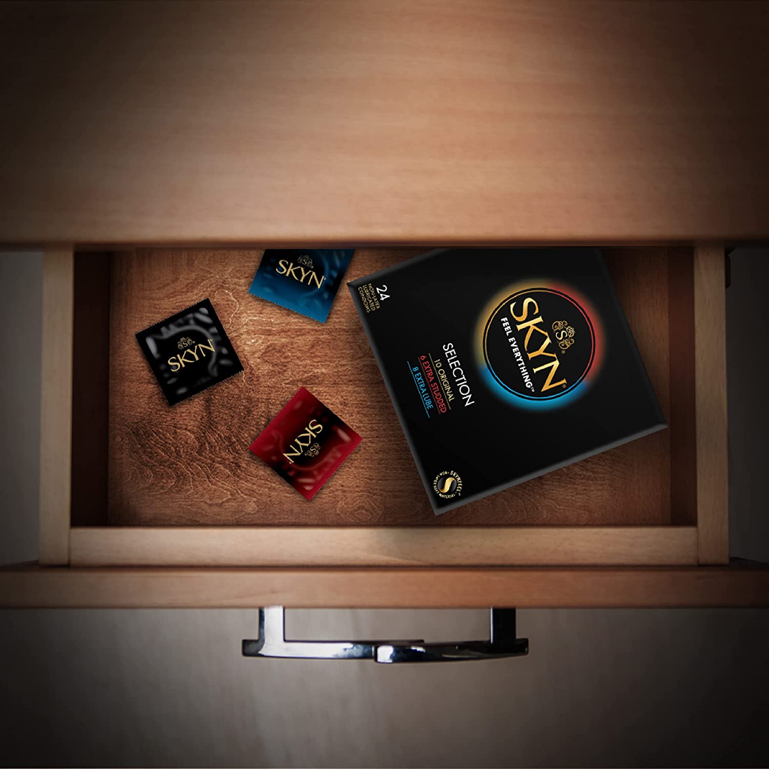 SKYN Premium Polyisoprene Lubricated Condoms easily stretch and conform to your shape so that they are comfortable to use. They're also free from allergens, making them a safe choice. These non-latex lubricated condoms feel soft and natural and provide an extraordinary experience.